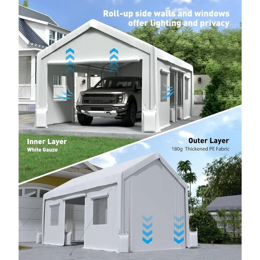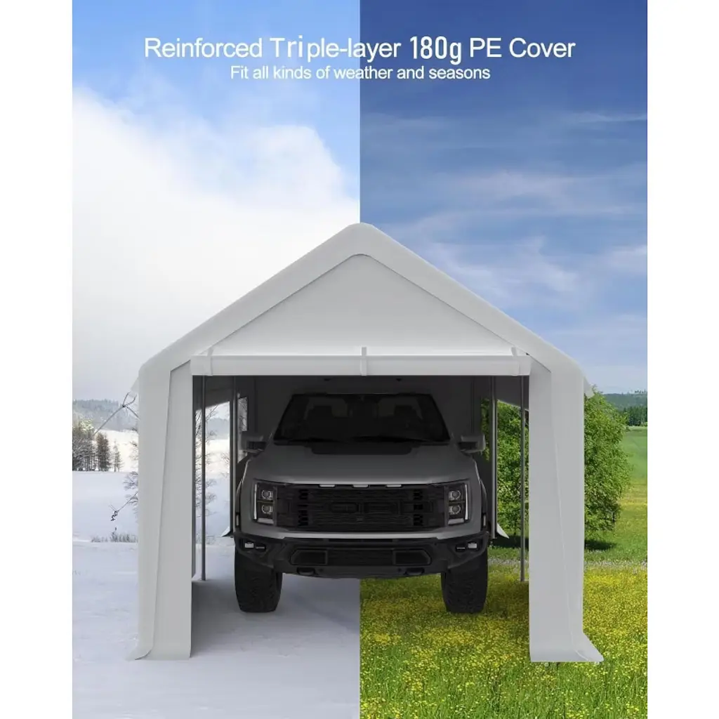 Upgrade your portable garage with the Acekool carport zipper door replacement. This set includes two gray doors designed to fit carport frames. Please note, frames are not included. The strong waterproof and wind-resistant build helps keep vehicles, boats, or tools protected from rain, sun, dust, and wind. Acekool’s zipper doors install easily thanks to clear attachment points and simple step-by-step instructions. The roll-up feature with heavy-duty zippers lets you open or close your shelter quickly, offering convenient access and better airflow for your garage or storage tent. The universal gray finish blends well in driveways, yards, and commercial spaces. Great for replacing worn or damaged doors, this set is a practical way to extend the life of your portable garage. Acekool replacement doors give you reliable protection and everyday ease, helping you secure your outdoor space all year round.
