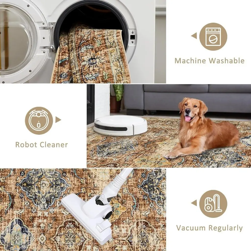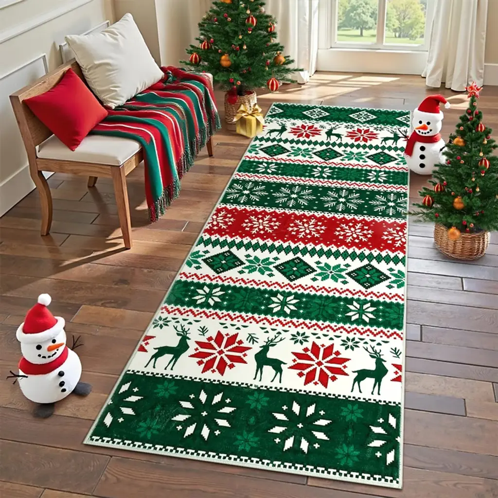 Acekool Christmas Area Rugs Festive Holiday Doormat Machine Washable Non-slip Rug For Entryway,living Room & Dining Areas Red 2X8
