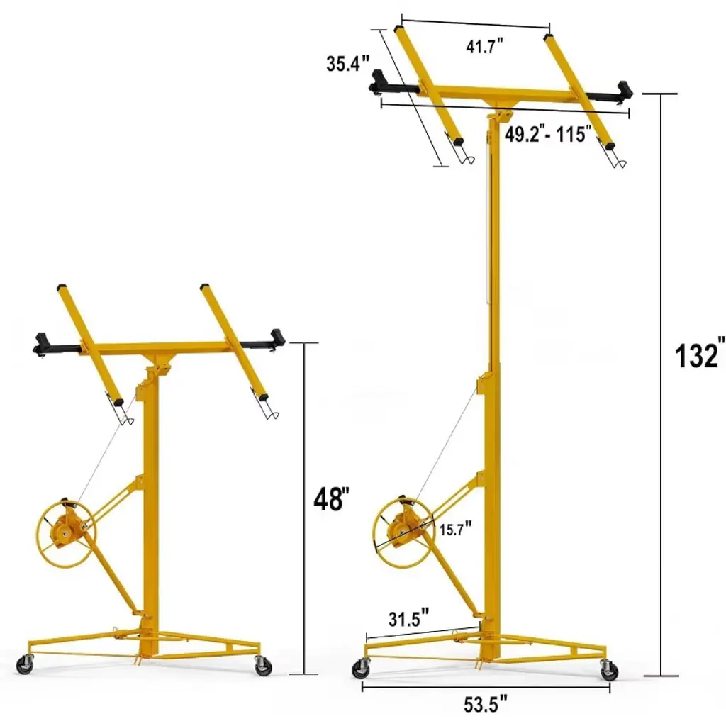 Acekool Drywall Lift is your partner for hanging drywall on ceilings and walls, offering ease, efficiency, and strength for home improvement or construction work. Designed to lift panels up to 150lb, it features a built-in winch for smooth raising and a triangular base for steady placement while you work. The telescopic arm extends from 4 to 11 feet, allowing for flexible positioning and making it easy to load panels at a convenient height. Rotate your drywall 360° or tilt forward, backward, or horizontally up to 65°, making tough jobs—including angled or sloped ceilings—far less challenging. With 3 lockable wheels, you can move the lifter easily around your workspace and secure it when stationary. Foldable design means it’s simple to store or transport from job to job. Specifications: 11ft maximum lift, 150lb capacity, telescopic arm, 360° rotation, 3 lockable wheels, manual winch, folding frame. Ideal for garage, shop equipment, and professional Lift Jacks category projects.