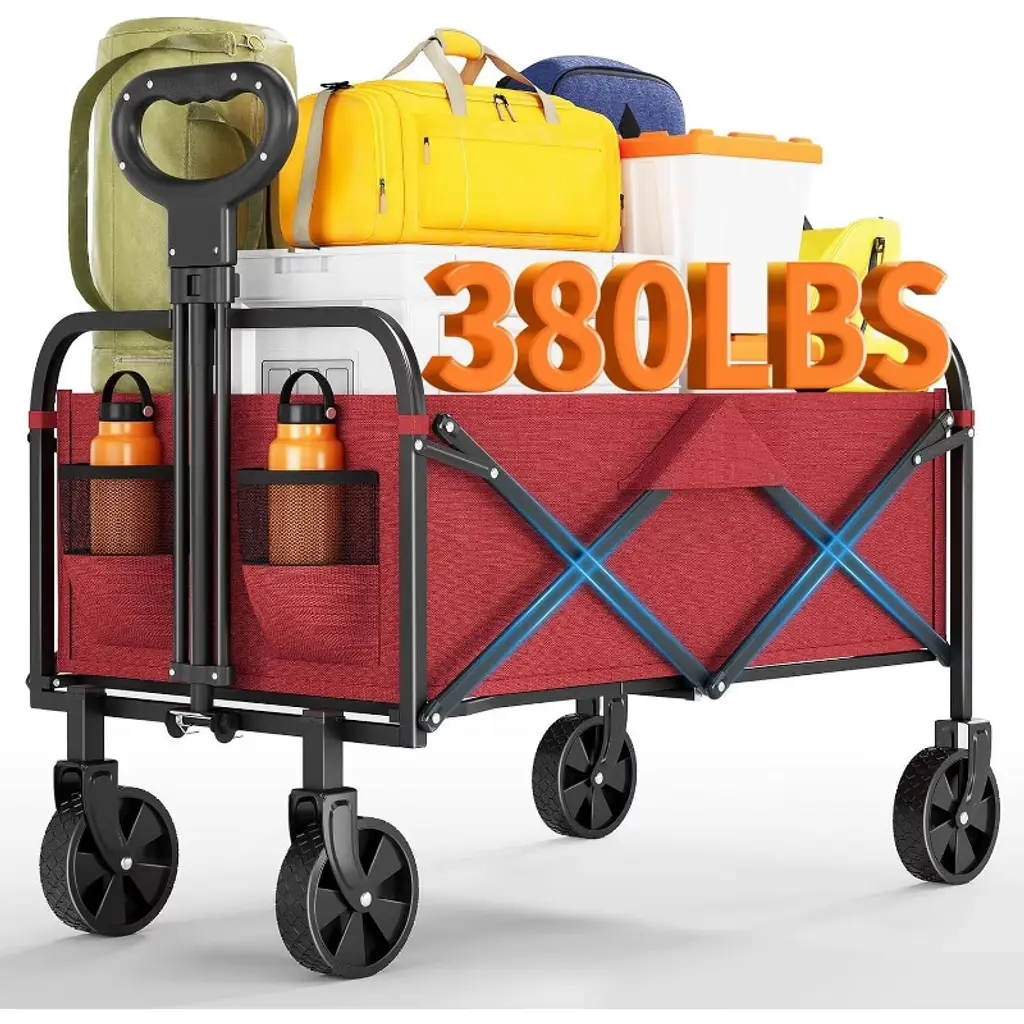 Acekool Foldable Utility Wagon Cart, 380lbs Capacity, 360° All-terrain Wheels, Adjustable Handle, Cup Holders, Portable For Shopping, Camping, Black
