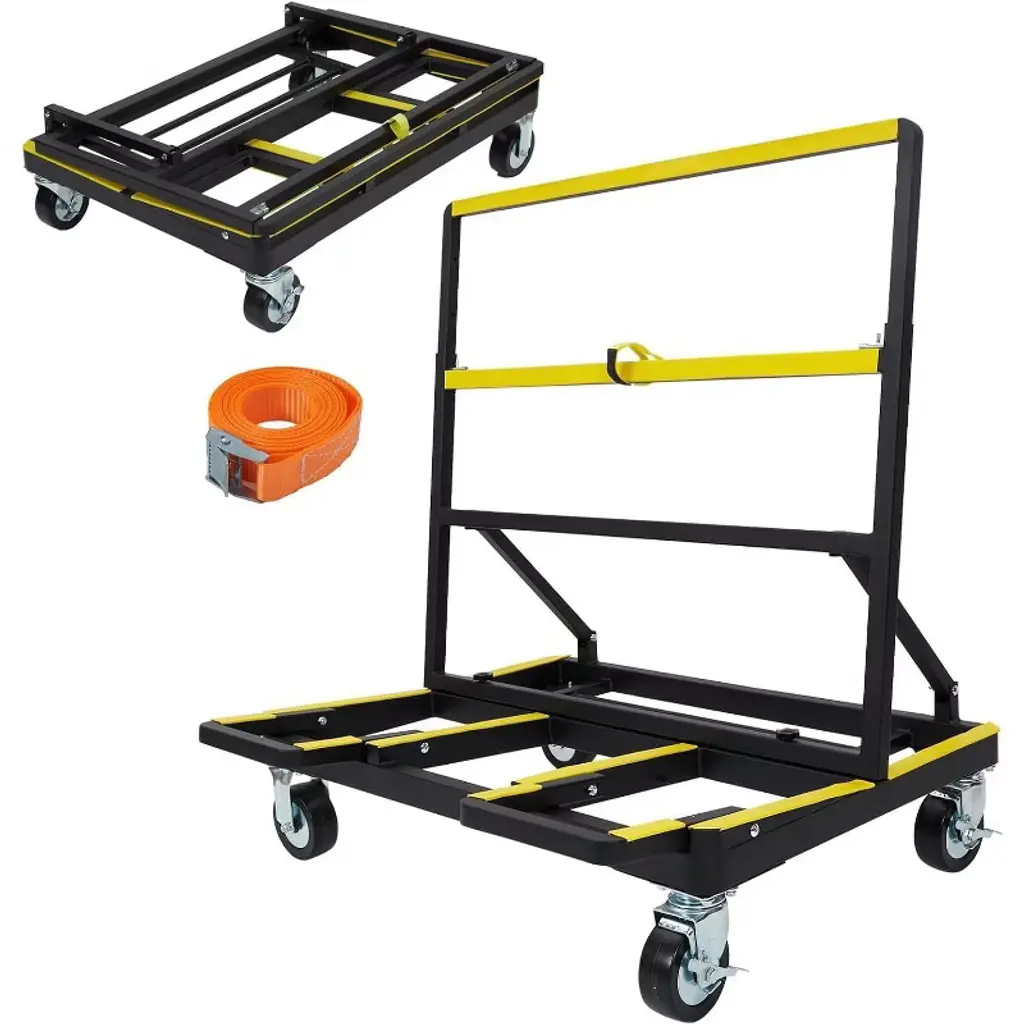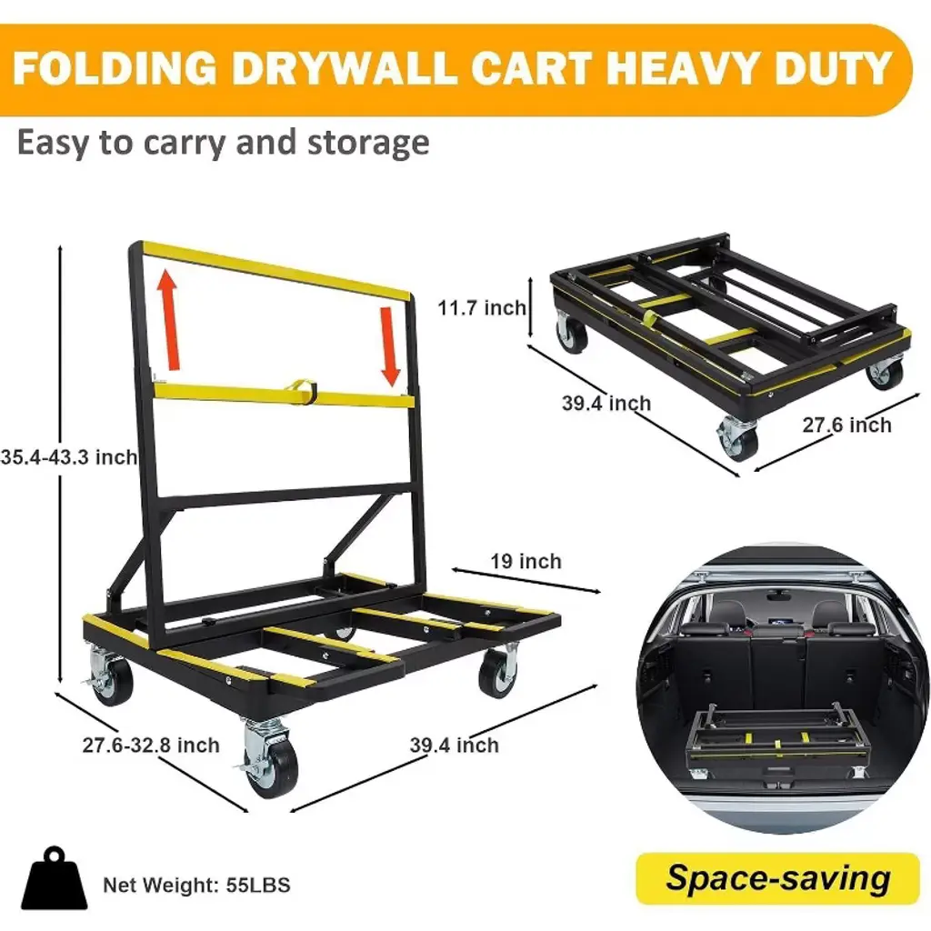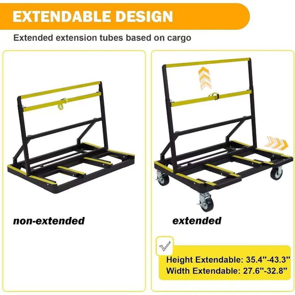 The Acekool Folding Hand Truck is engineered to help you move heavy loads up to 2200 lbs safely and easily. Its steel frame design with triangular reinforcement offers enhanced stability and strength, ideal for transporting large panels, glass sheets, or industrial materials. The inclined platform includes anti-slip strips that protect your cargo and keep it secure throughout transit. Adjustable straps with a mechanism fasten your items with minimal effort, preventing movement during transport. The truck’s deck, handle height, and width can be tailored to different cargo dimensions and user preferences, providing excellent flexibility for a range of applications. When folded, it compacts to a size that fits conveniently in vehicle trunks or tight storage spaces. Mobility is effortless thanks to four 360° swivel rubber casters that roll smoothly across floors without noise or damage. Two locking wheels ensure the truck remains steady when parked. Setup is fast and straightforward, requiring no tools and just minutes to complete, making this folding hand truck a practical choice for any workplace or home project. Dimensions: Unfolded Size: 39.4" L × 32.8" W × 43.3" H Folded Size: 39.4" L × 27.6" W × 11.7" H Load Capacity: 2200 lbs Features 4 swivel industrial rubber casters, 2 with locking brakes Adjustable deck, handle height, and width for user convenience