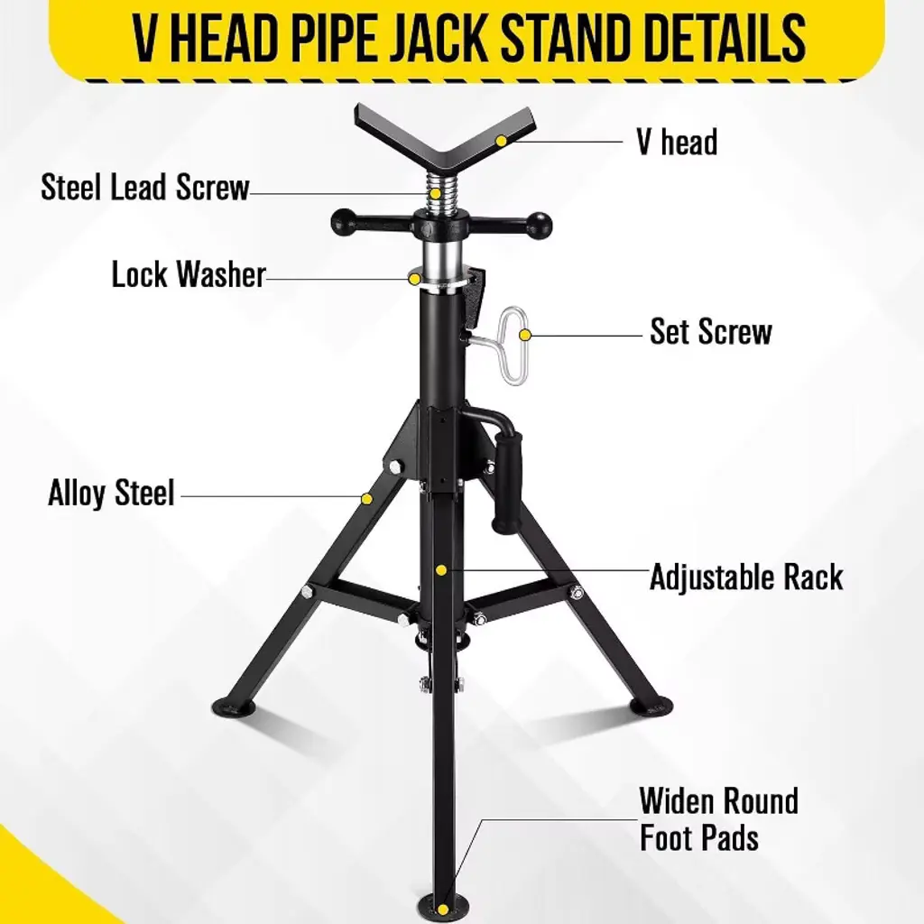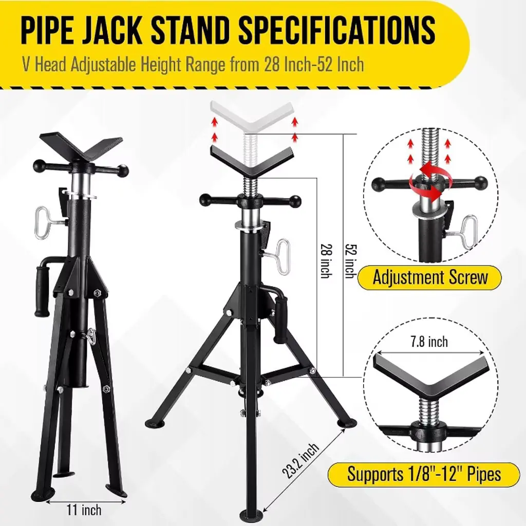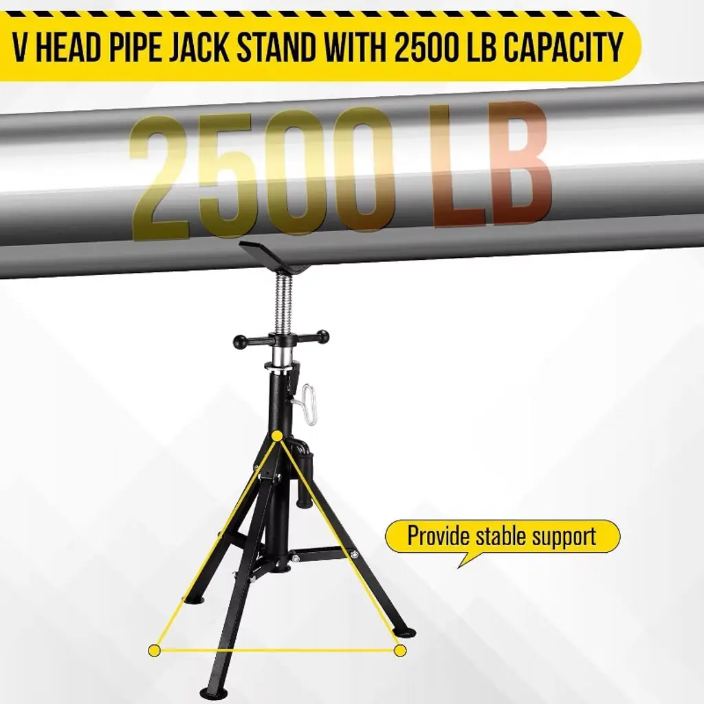Acekool Heavy-Duty V-Frame Jack Stand brings strong support and flexibility to your workshop or job site. It handles up to 2500 pounds, keeping pipes, axles, and other structural parts safe and secure during repair, welding, and construction tasks. The height adjusts from 28 to 52 inches with a two-step process so you can quickly set the right position for many types of jobs. Non-slip feet and a triple-braced triangular base provide steady placement on both smooth and rough surfaces, minimizing risky movement. After use, the stand folds down to a slim shape for easier storage and transport, with a comfortable handle that helps you carry it wherever needed. Steel construction and a protective finish support reliability on busy sites or in your garage. Specifications: 2.5 ton/2500LB capacity, 28–52in adjustable height, foldable base, steel frame, non-slip feet, ergonomic grip, black color. Fits shop equipment and lift jack needs for auto, fabrication, and construction.