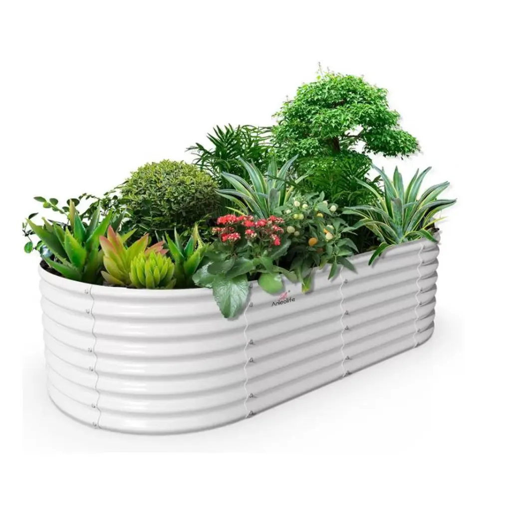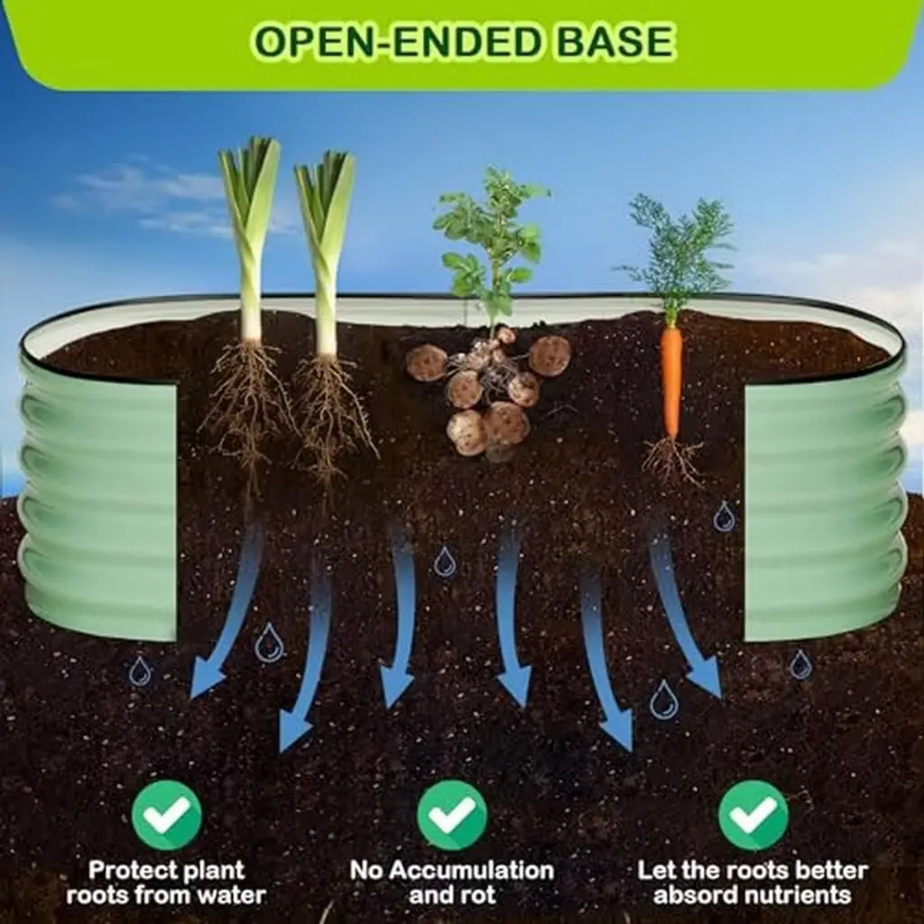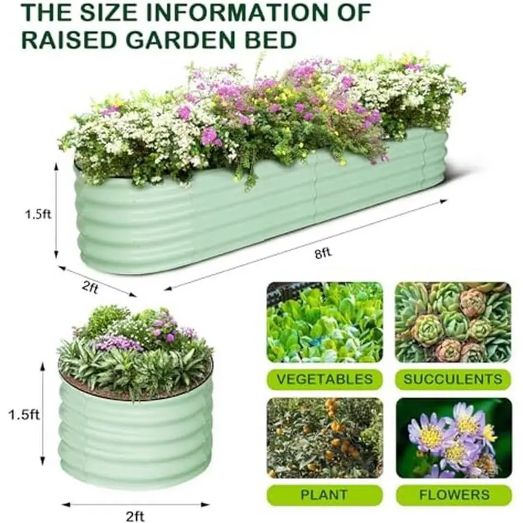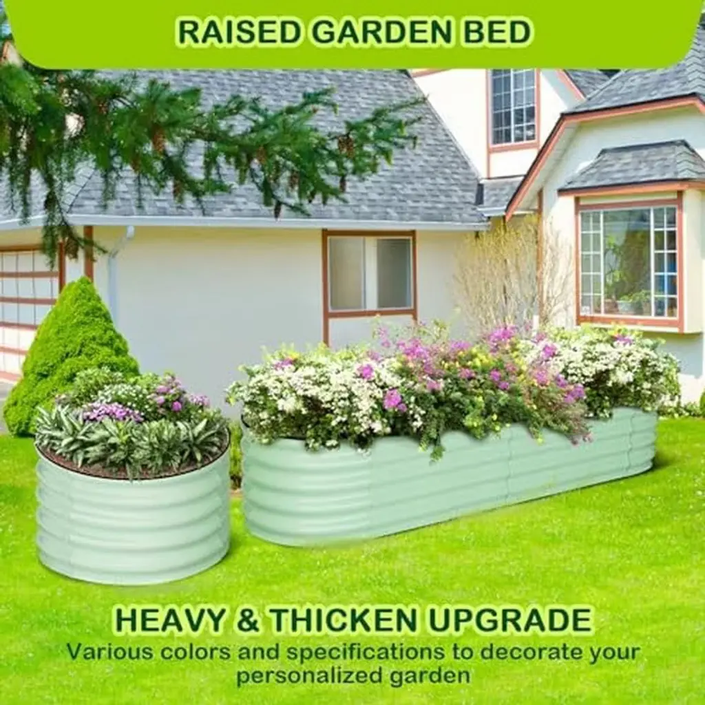 Create Your Dream Garden with Flexible Sizes Acekool’s raised bed set lets you grow more with less bending. The modular design fits small balconies or spacious backyards. Pick oval beds for rows of veggies or round ones for flower clusters—all with natural drainage and rugged steel frames. Built for Years of Growth The textured Olive Green and neutral Beige finishes blend into any outdoor space. Thick steel won’t warp, and the open base invites worms for healthier soil. No digging required—just set up and start planting. Specs & Options: Sizes: Oval: 6x3x1ft / 6x3x1.5ft / 6x3x2ft / 8x2x1.5ft / 8x2x2ft Round: 2x2x1ft (2pk) / 3x3x1ft (2pk) / 4x4x1ft (2pk) Colors: Earthy Olive Green or warm Beige Material: Rust-proof galvanized steel with rubber edges Assembly: Tool-free (wing nuts included) Use: Vegetables, flowers, herbs—indoors or outdoors Tip: Pair a tall 2ft oval bed with round planters for a tiered garden effect!