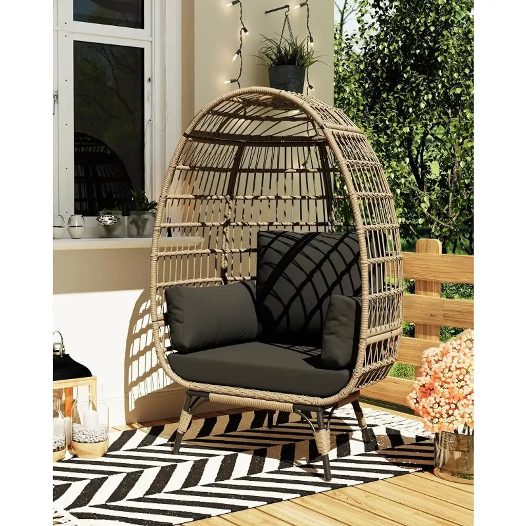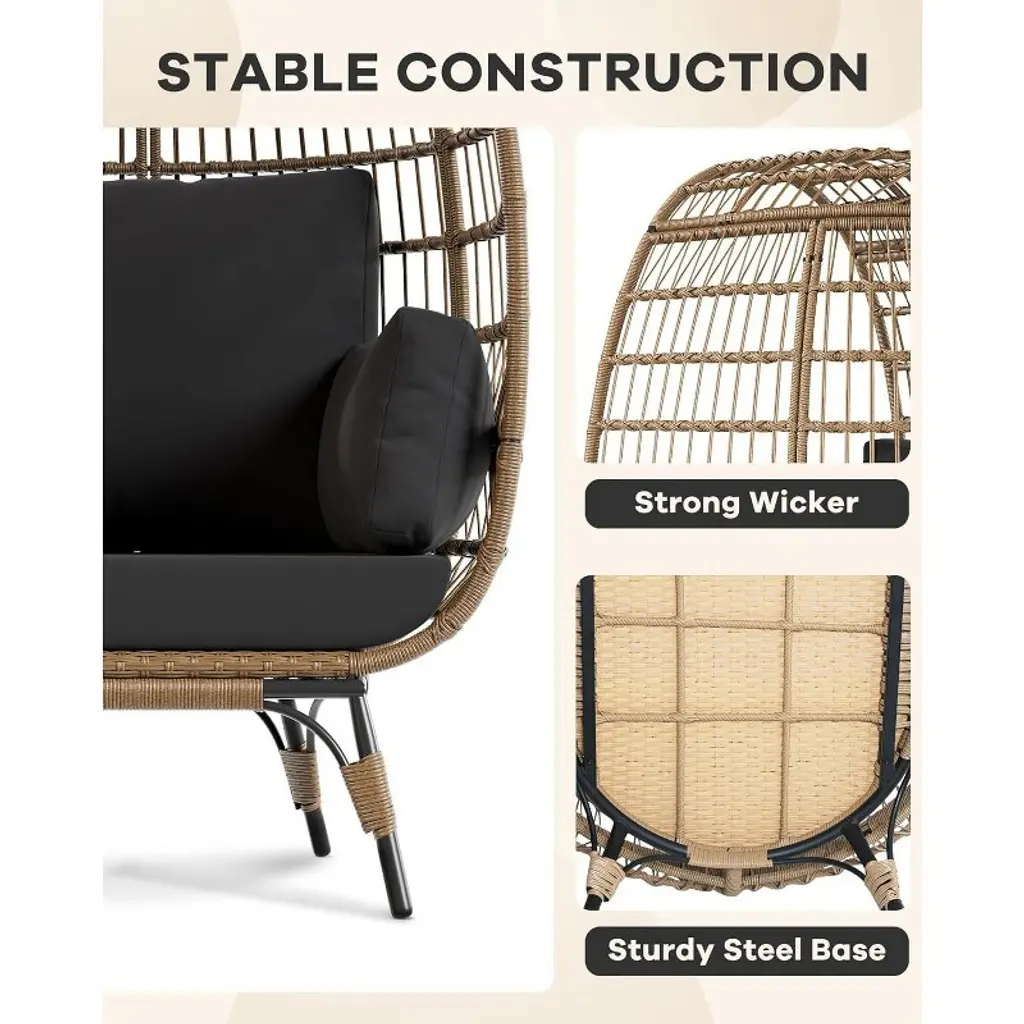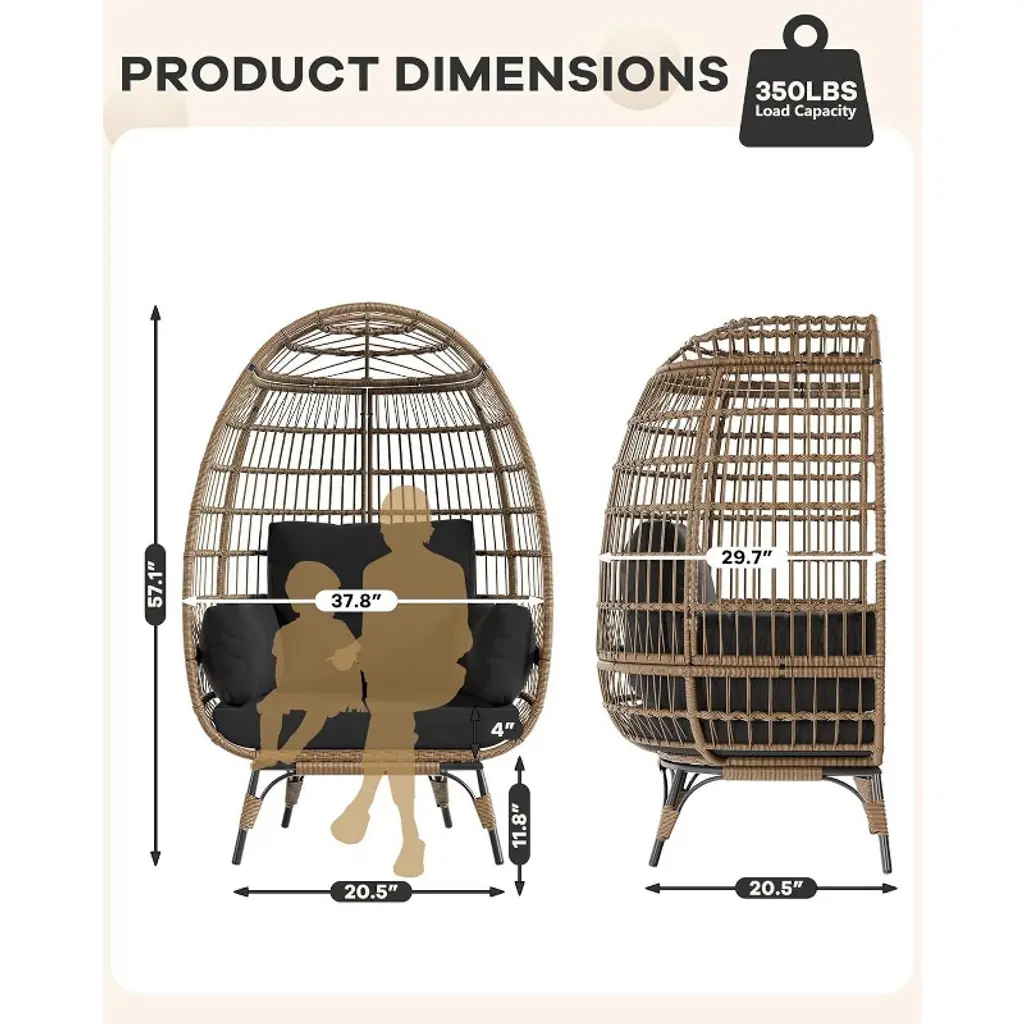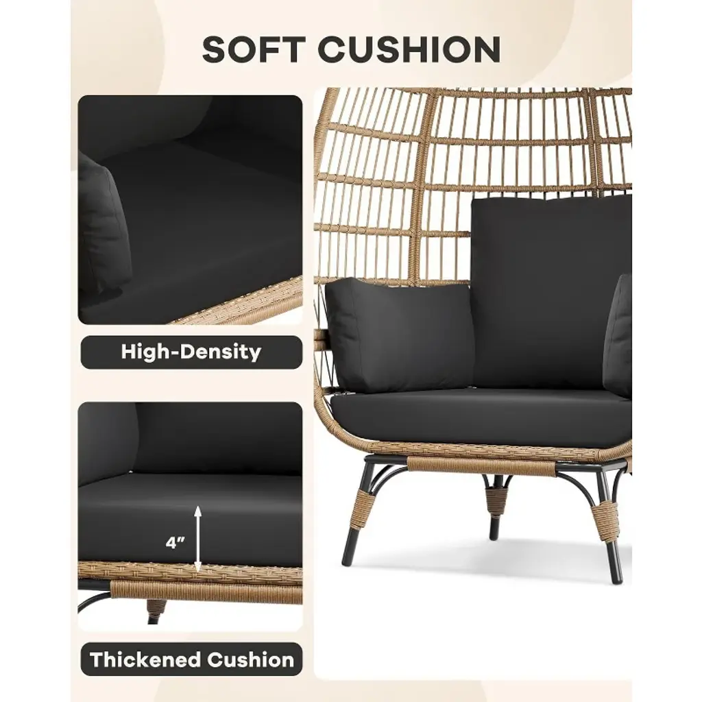 Acekool Oversized Egg Chair With Thick Cushions - 350lb Capacity Wicker Lounge Chair For Indoor/outdoor,black