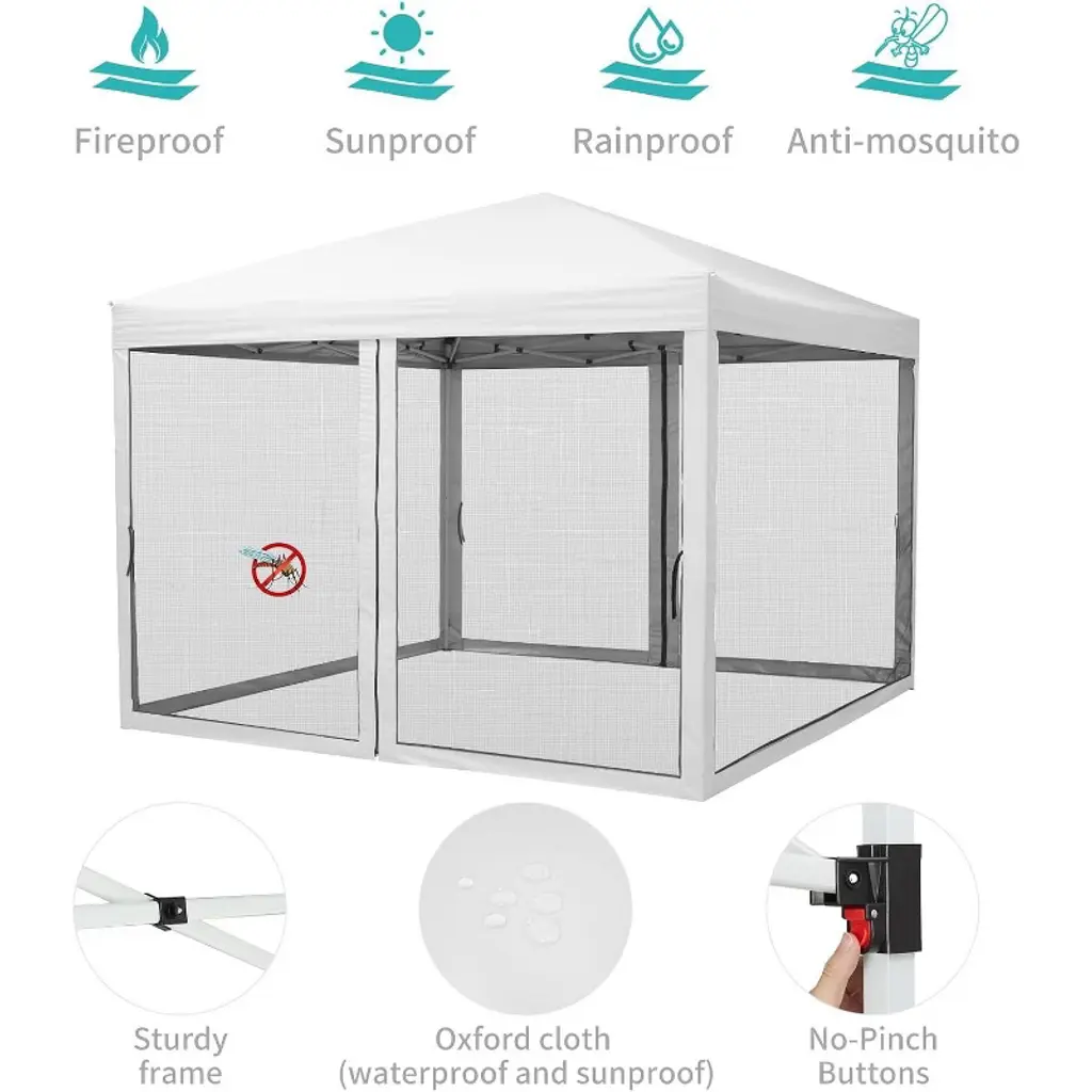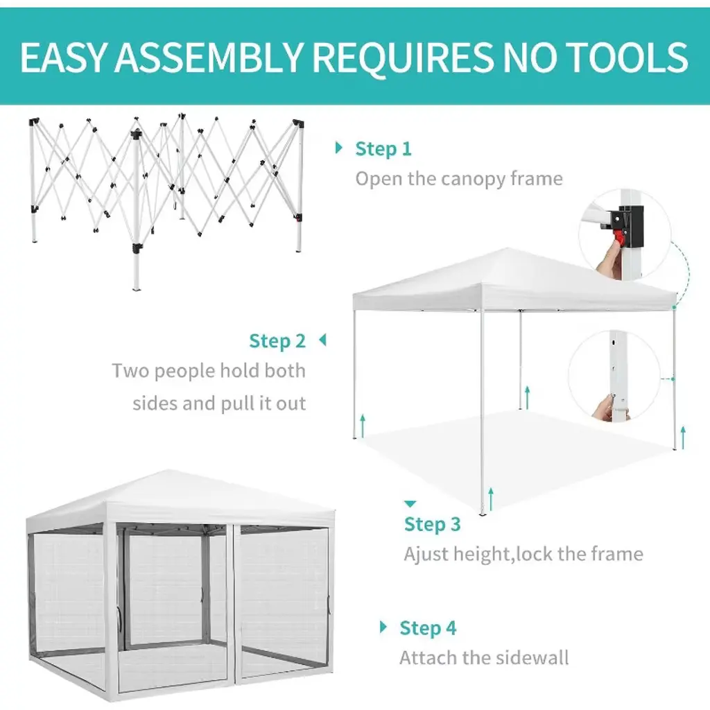 The Acekool Pop Up Canopy Tent creates a comfortable, shaded space for any outdoor occasion. This pop up shelter sets up quickly and provides protection from the sun, wind, and bugs. The waterproof and UV-resistant Oxford cover keeps everyone cool and dry, while the full mesh sidewalls offer privacy and keep mosquitoes out, making this canopy ideal for camping, backyard parties, patio lounging, or days at the park. Built on a sturdy iron frame with a powder-coated finish, the tent stands up to outdoor use and resists rust. Choose from three adjustable heights for the right fit at any event, whether you’re having a picnic, relaxing by the beach, or hosting a family reunion. The patented center lock feature makes set up fast—just a single push locks all legs for instant stability. When it’s time to pack up, the canopy folds into a compact wheeled bag for easy transport and storage. Enjoy sun, breeze, and bug-free comfort wherever your adventures take you.