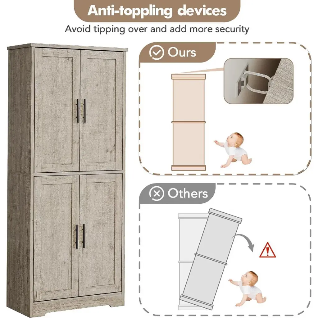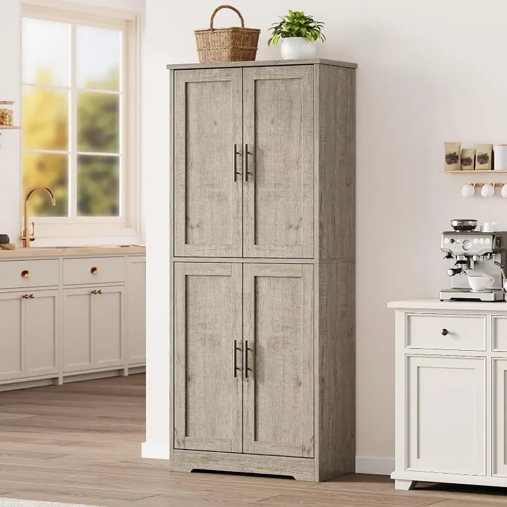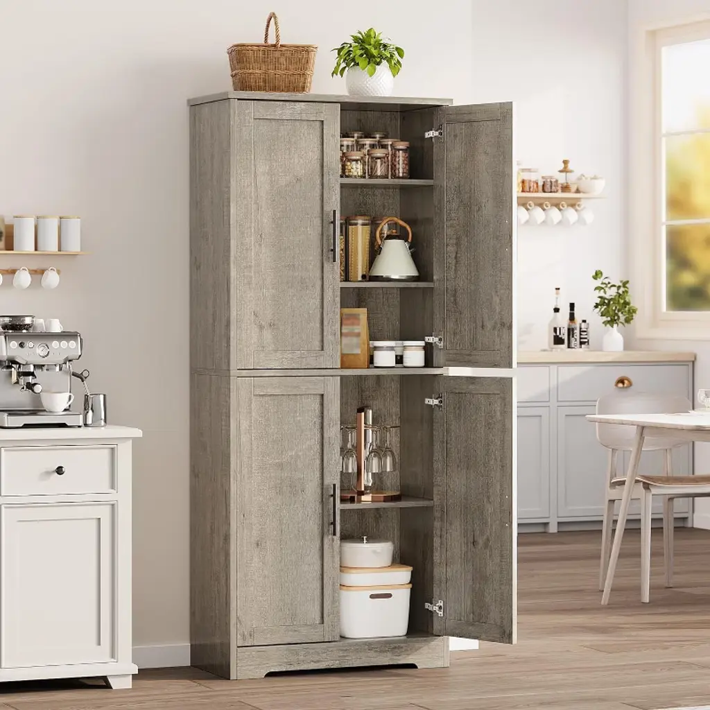 The Acekool Pantry Cabinet is a practical storage solution designed to fit seamlessly into any home. With a tall, slim profile, this freestanding cabinet maximizes space without crowding your kitchen, dining room, or bathroom. Four doors and adjustable shelves provide flexible organization, making it easy to store pantry staples, serving dishes, or household essentials. Built for stability, the cabinet features reinforced shelves that support significant weight while keeping items secure. The clean-lined design features wood-grain panels and matte metal handles, blending effortlessly into modern and traditional spaces alike. Quiet-close doors and smooth hinges ensure a frustration-free experience every time you open or close them. Setting up your new cabinet is quick with the included step-by-step guide. Once assembled, it instantly adds function and style to your home, helping you declutter while keeping frequently used items within easy reach. Whether you need extra kitchen storage or a place for linens and decor, the Acekool pantry cabinet brings order and convenience to any room.