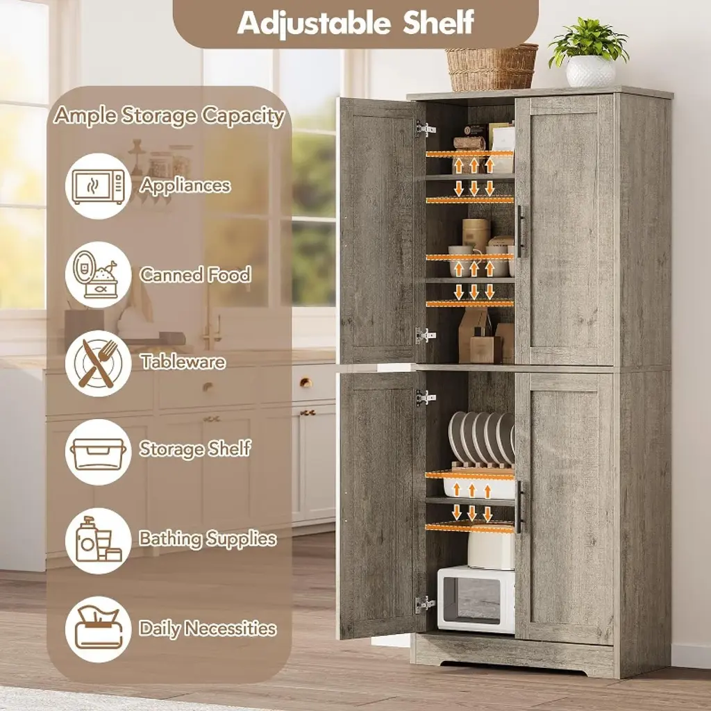 Acekool Tall Pantry Cabinet With Adjustable Shelves, 4-door Storage Cabinet For Kitchen, Dining & Bathroom