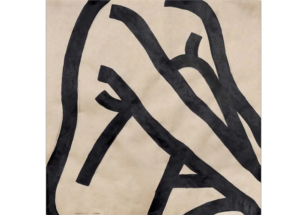 Inspired by the talented Jan Yoors, this figurative artpiece features bold black lines with hand-embellished strokes for an individual, textured design. Its natural background and substantial size accentuate its daring form, easily making a statement in any space.