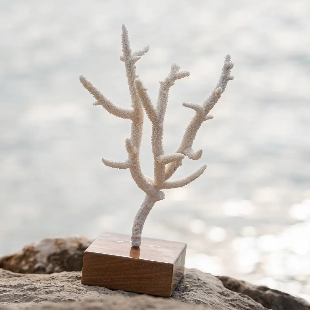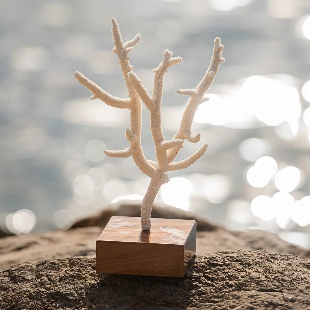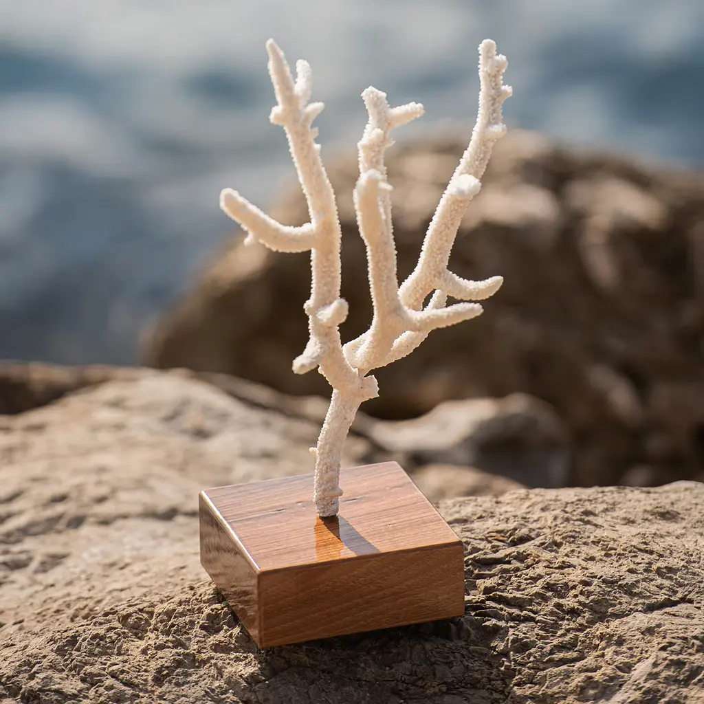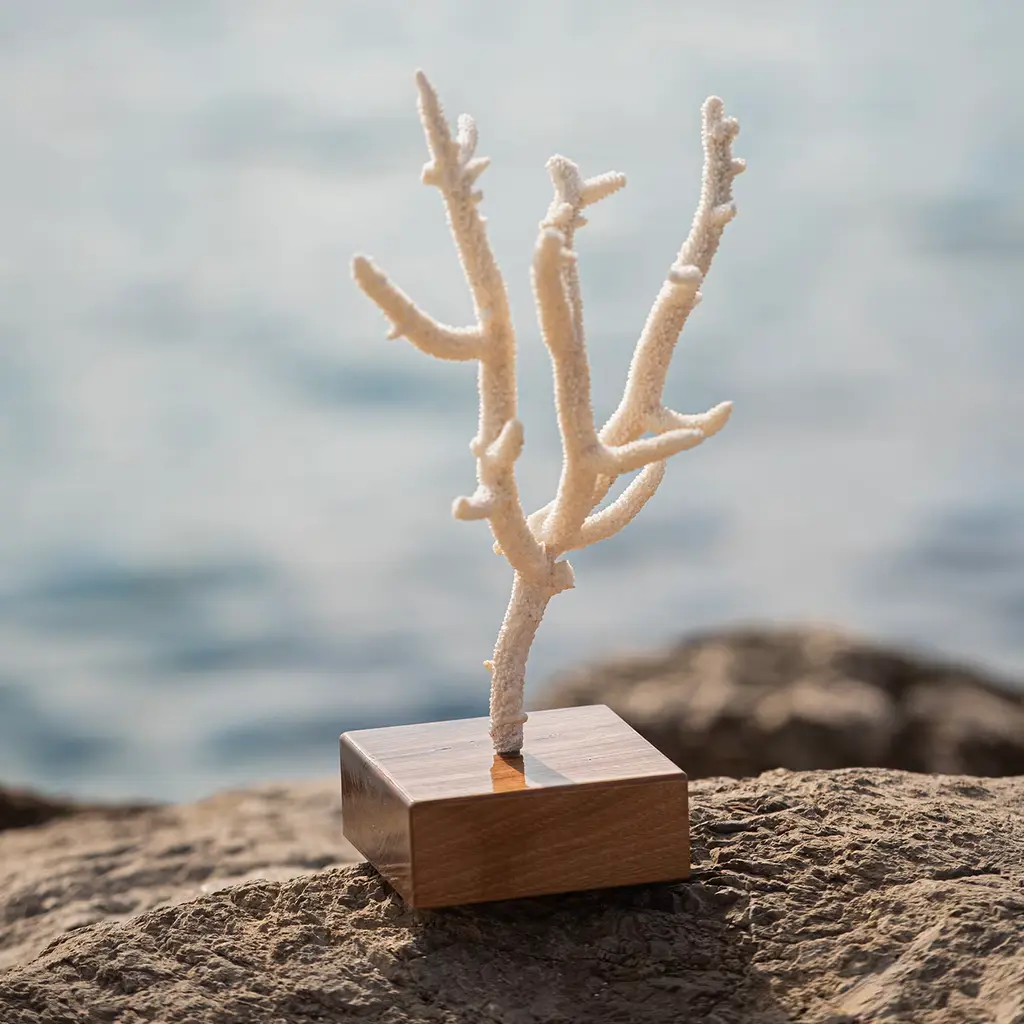 It suffices to let one's eye linger on the charming details of this Acropora Nobilis coral for daydreaming of exploring ocean floors. Elegantly stemming from a precious plinth base in polished walnut, the coral flaunts an intriguing and unique branched silhouette of great sculptural impact. The piece is CITES certified for safe import.