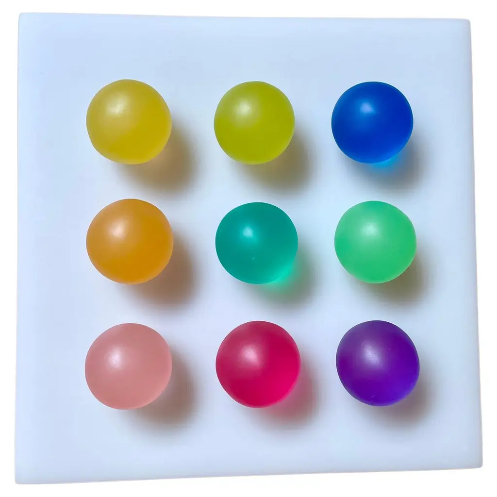 Tic-Tac-Whoa. Modern art or old school challenge? Both. Rack up style points with our update on a favorite parlor pastime. Featuring luminous turquoise and purple playing pieces on a thick slab of clear acrylic. A perfect housewarming present, gift for a playful host, or addition to your own game night.