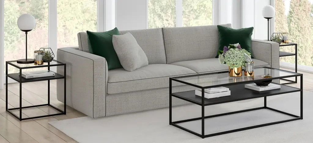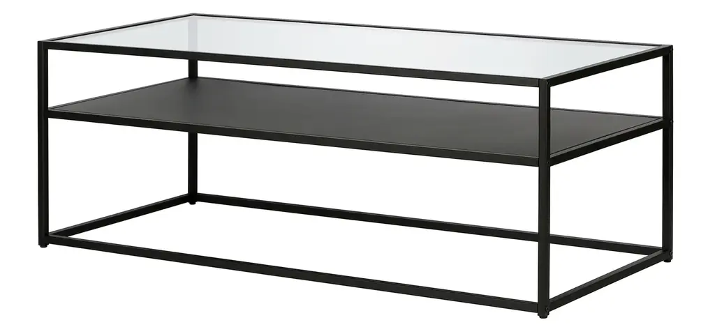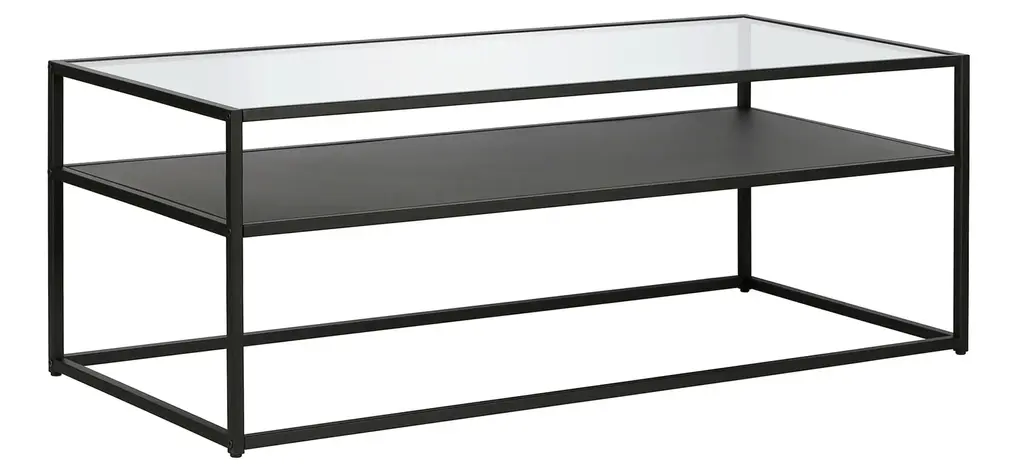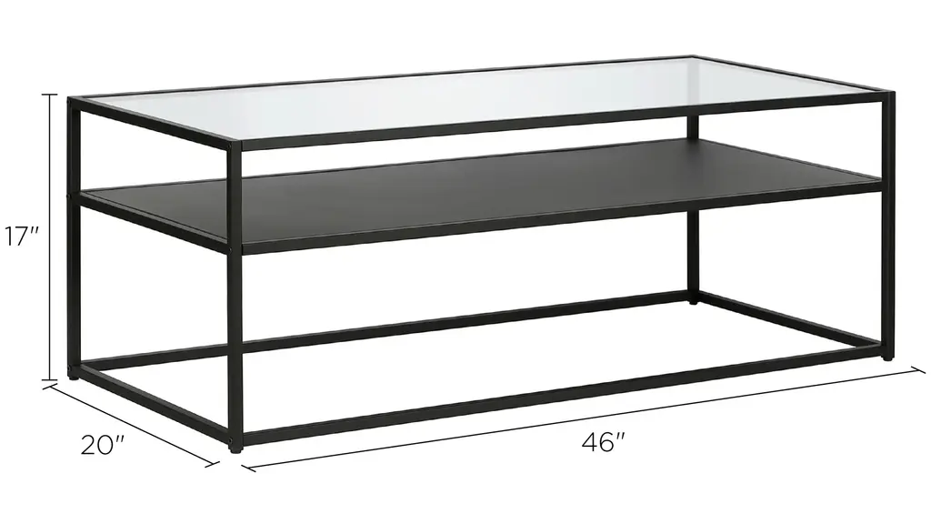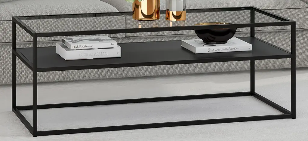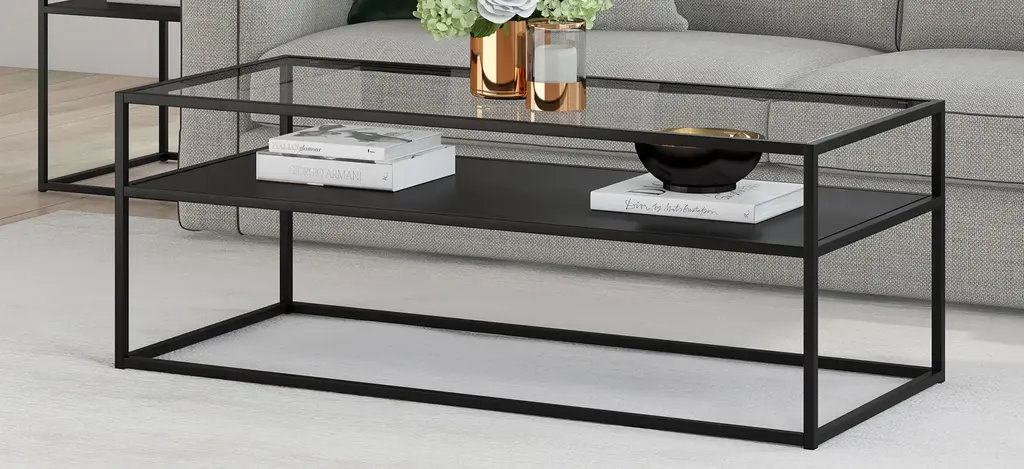 This industrial display box styled Ada coffee table features a seamless blend of function and design. Easy to style, the tempered glass top, metal shelf and blackened bronze finish make it the perfect addition to your living room or den ensemble.