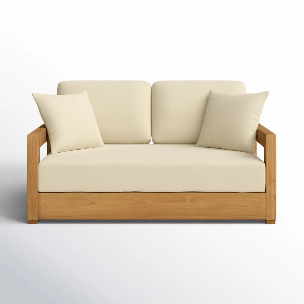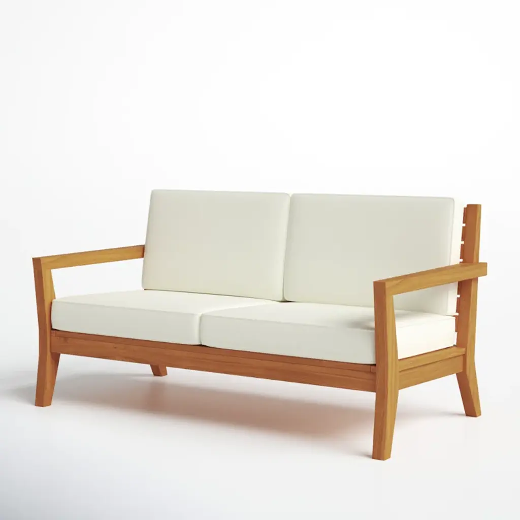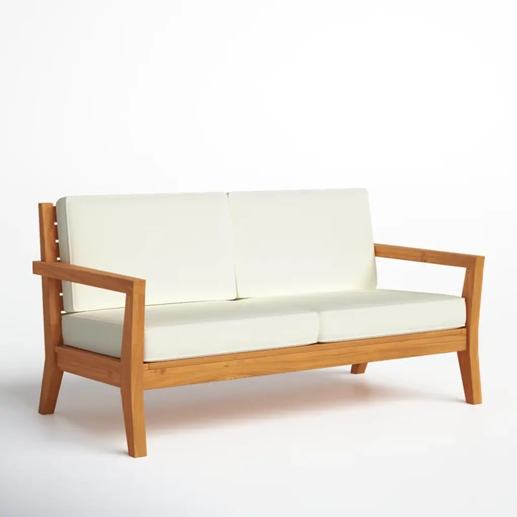 Adagio Outdoor Solid Teak Wood 2-Person Sofa With Cushions