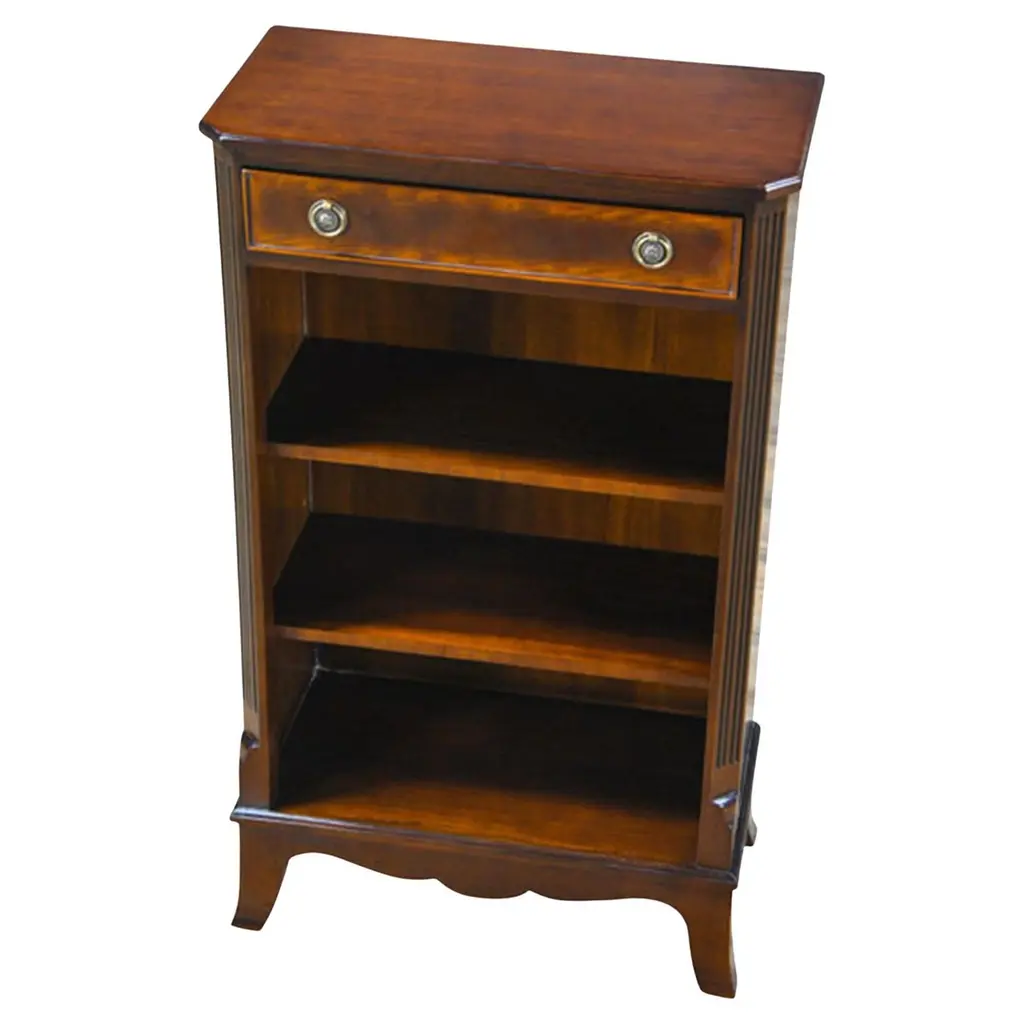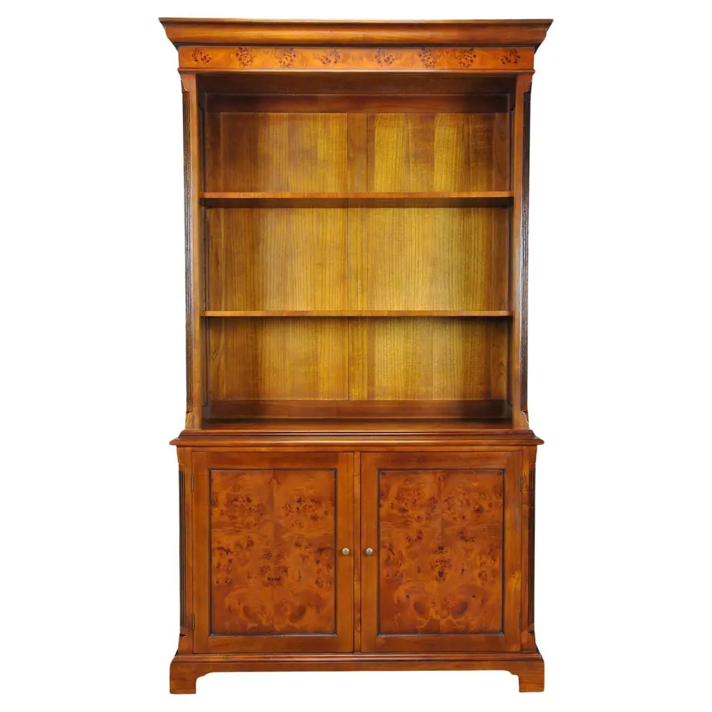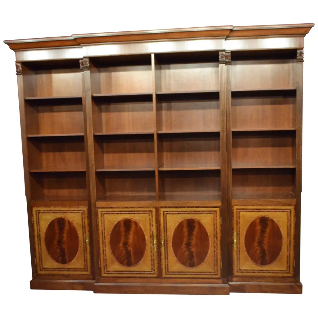 This superb beech bookcase is a stately design made to last and complement classic homes with unprecedented refinement. A minute reproduction of an authentic Adam-style piece from circa 1780-1820, it flaunts hand-carved grooves on the sides, coupled with other exquisite details accenting the top frame such as the bronze handles on the two drawers.