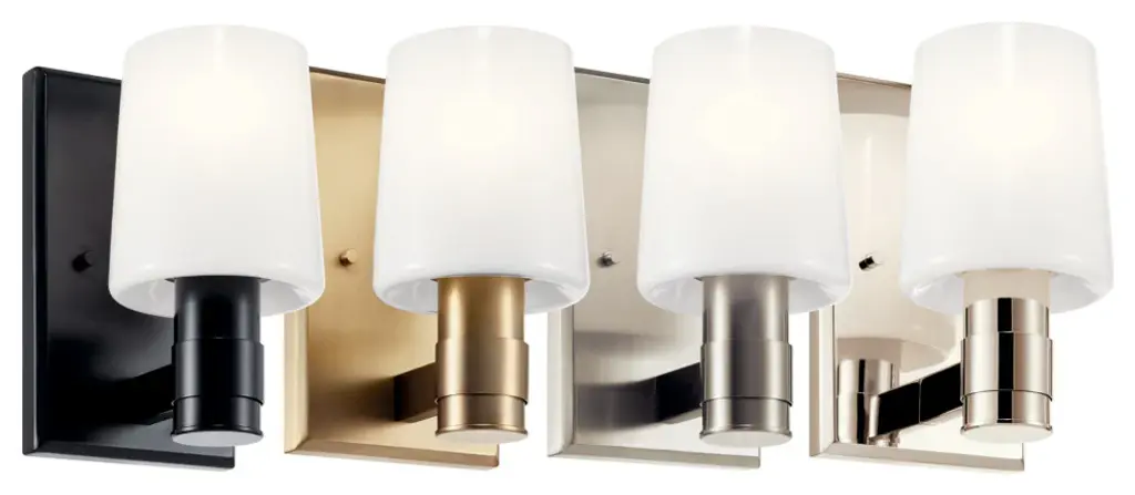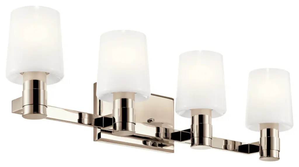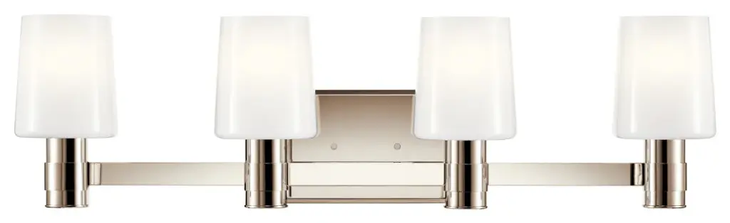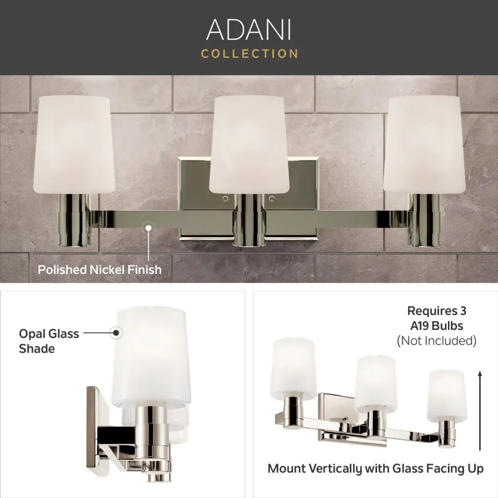 The striking silhouette of the Adani vanity light makes a sophisticated statement. Beautiful opal glass illuminates your modern bathroom. Its polished nickel finish is always timelessly on-trend.
