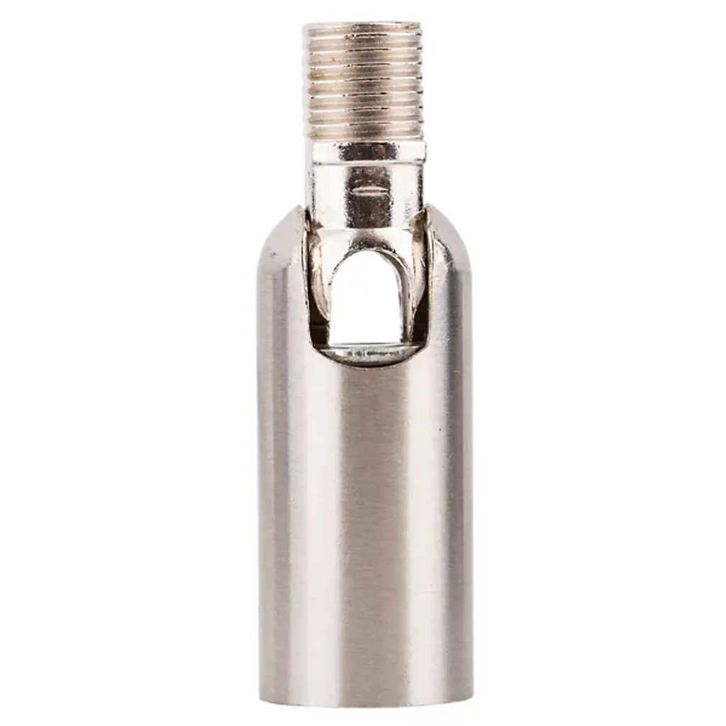 0 to 90-degree ceiling adapter compatible with select pendants. Electro-plated or powder-coated aluminum, brass, and steel.