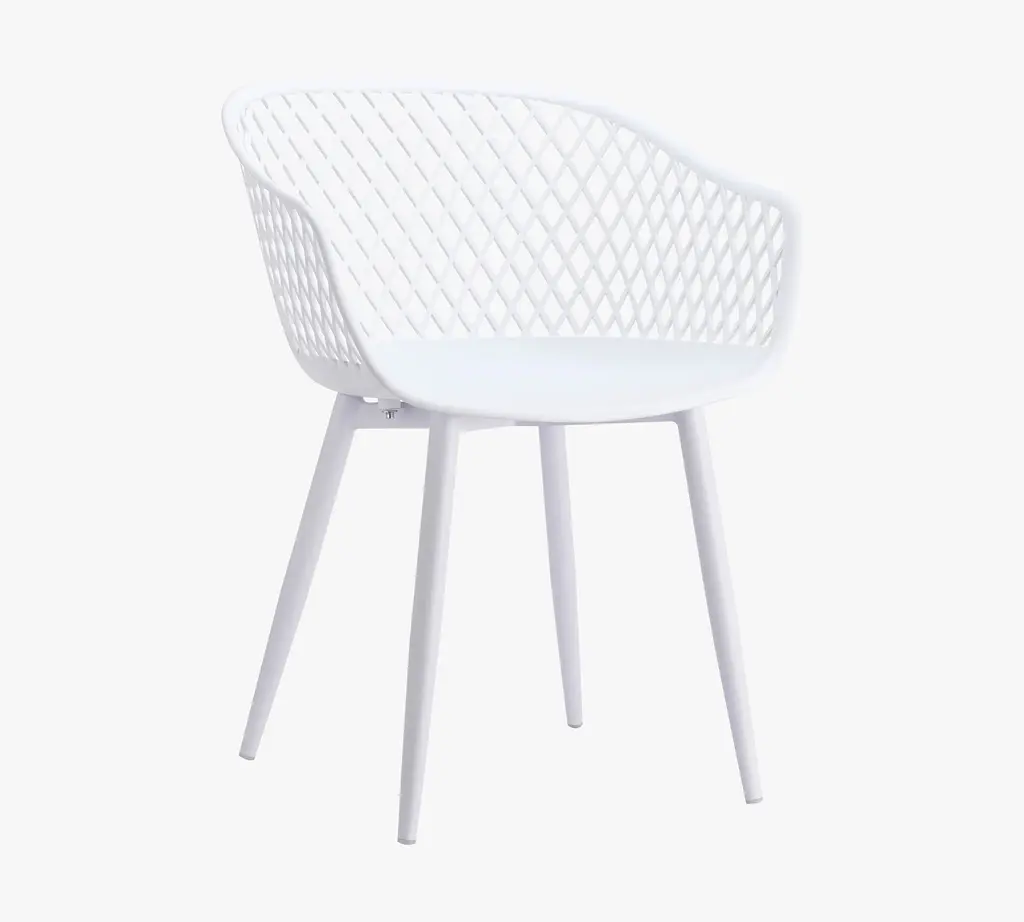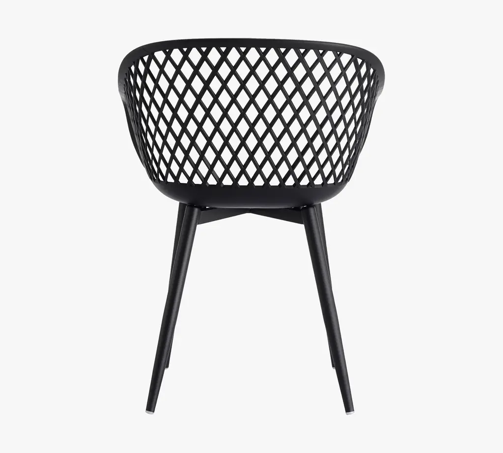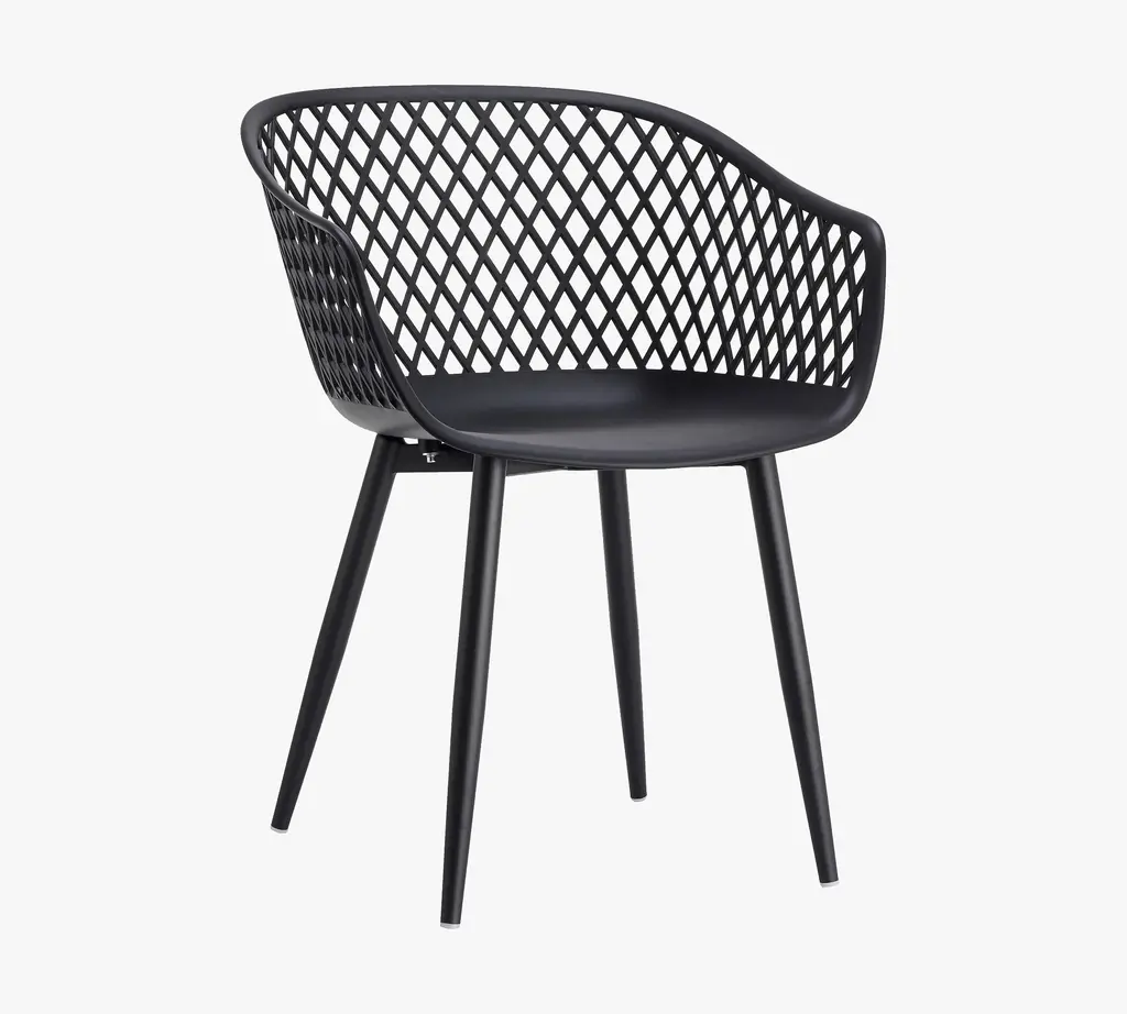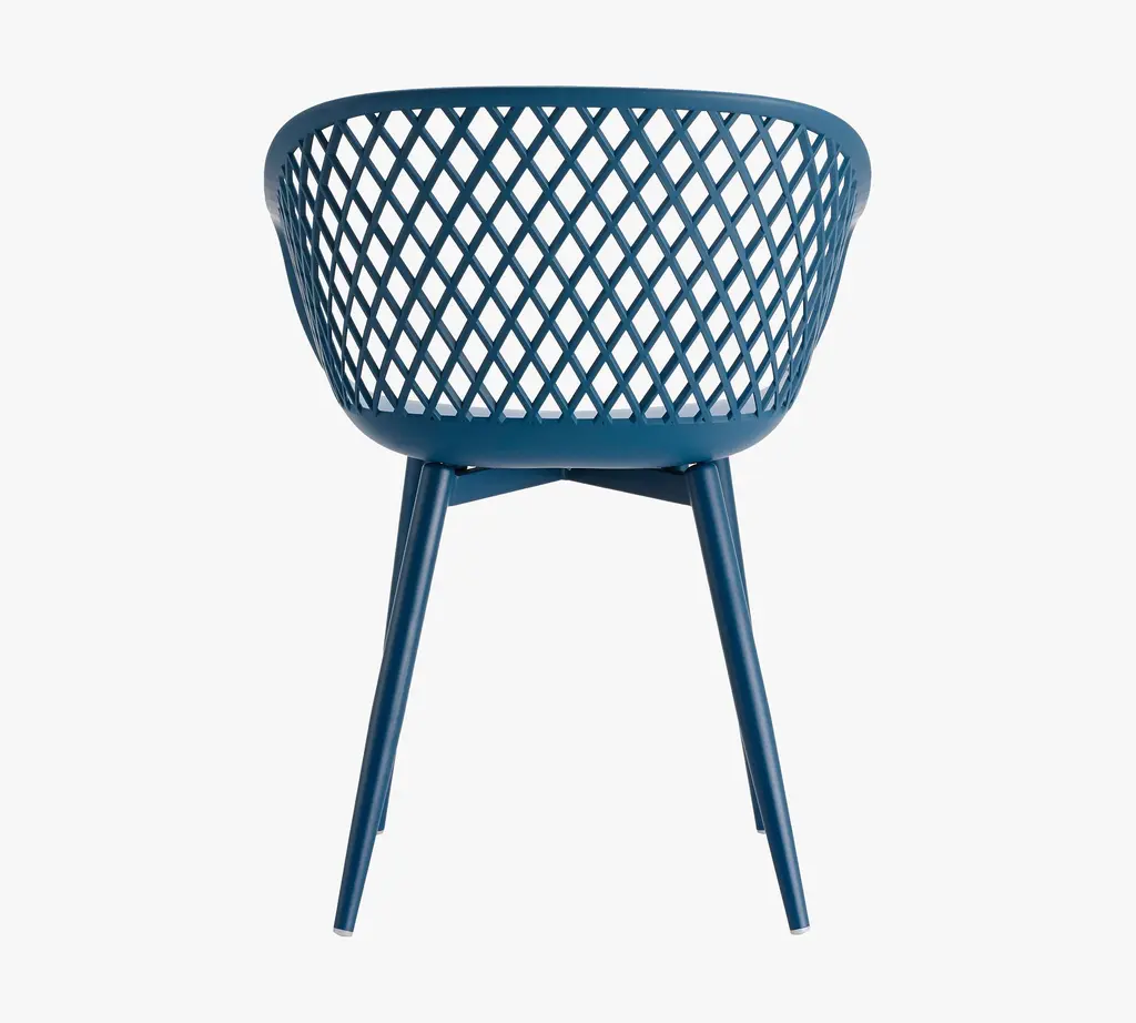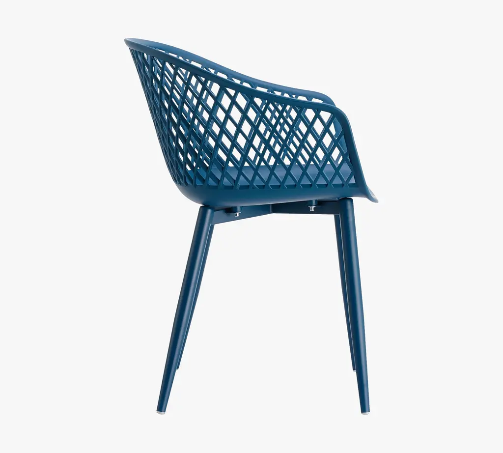 This set of chairs takes the weave we love in wicker and reamigines it in color. A scooped-shell seat, slender metal legs, and a low back all add to the modern, airy ease that feels as chic as a bistro. Outdoor friendly in your choice of color.