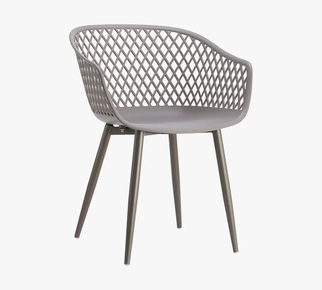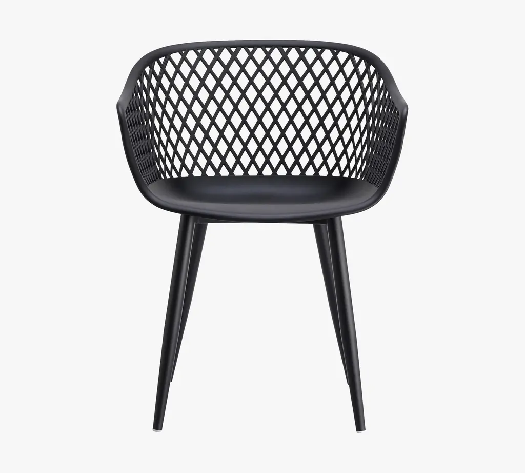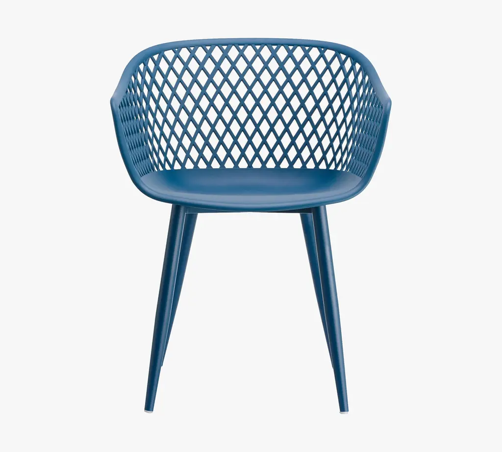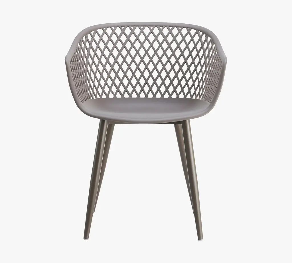 This set of chairs takes the weave we love in wicker and reamigines it in color. A scooped-shell seat, slender metal legs, and a low back all add to the modern, airy ease that feels as chic as a bistro. Outdoor friendly in your choice of color.