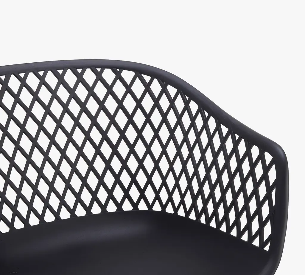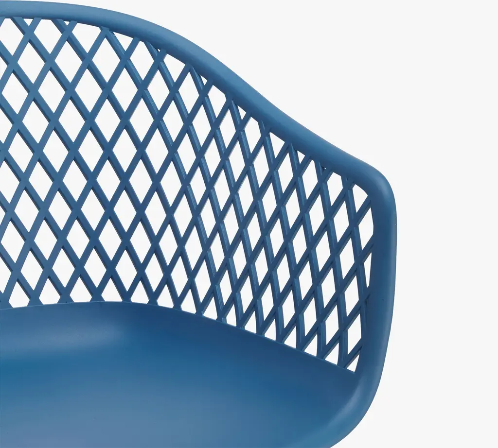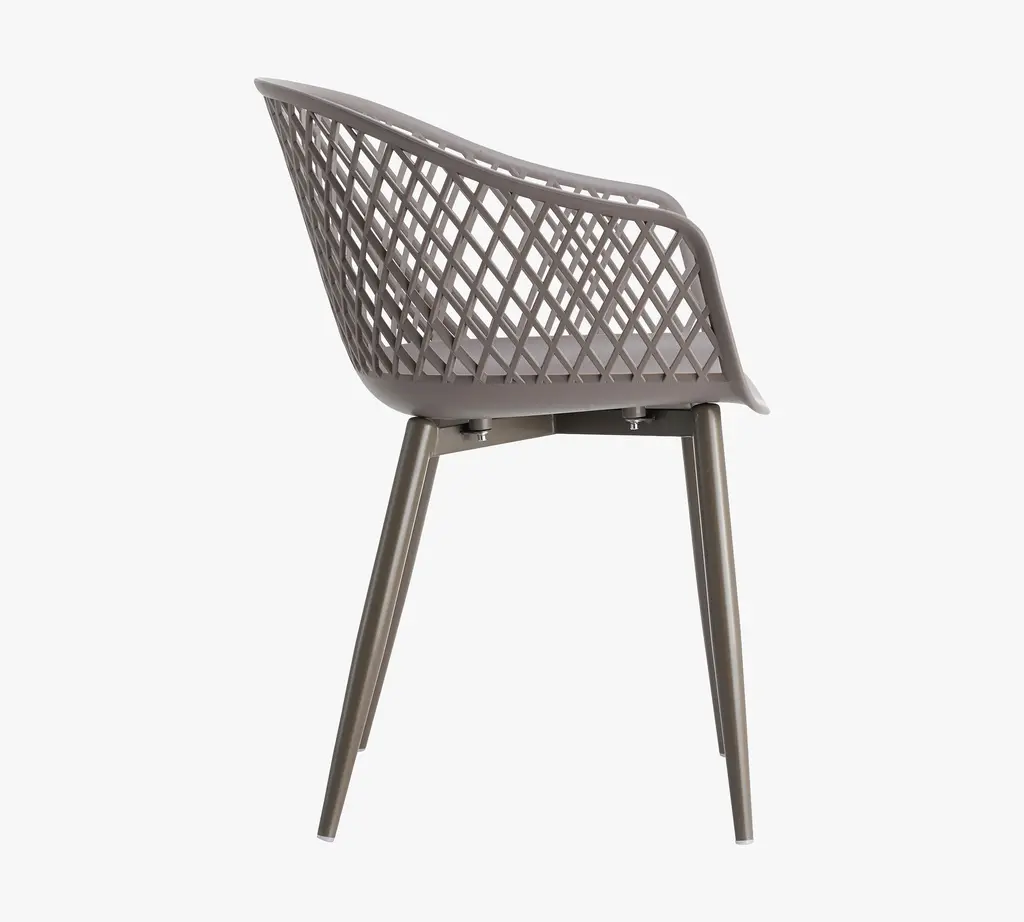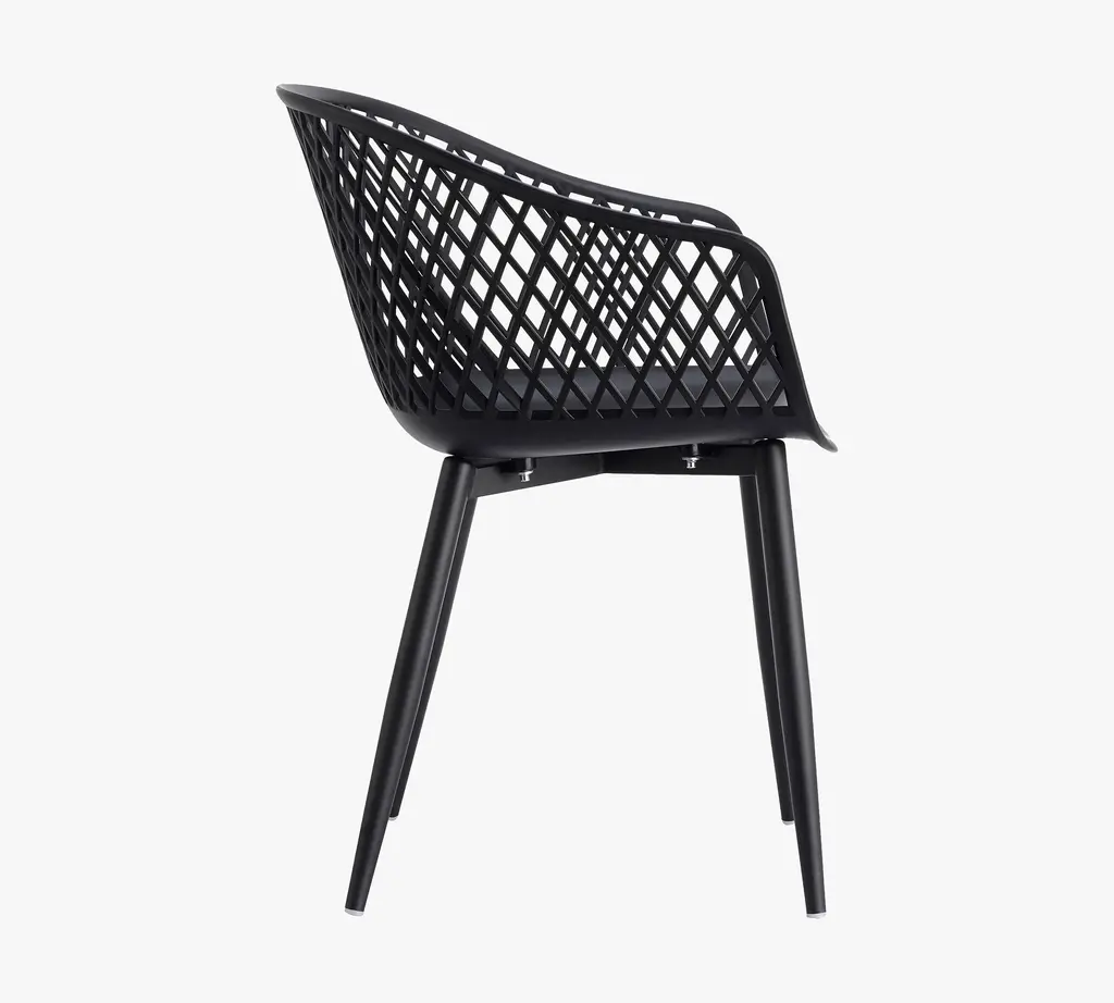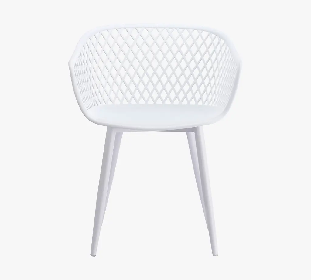 This set of chairs takes the weave we love in wicker and reamigines it in color. A scooped-shell seat, slender metal legs, and a low back all add to the modern, airy ease that feels as chic as a bistro. Outdoor friendly in your choice of color.