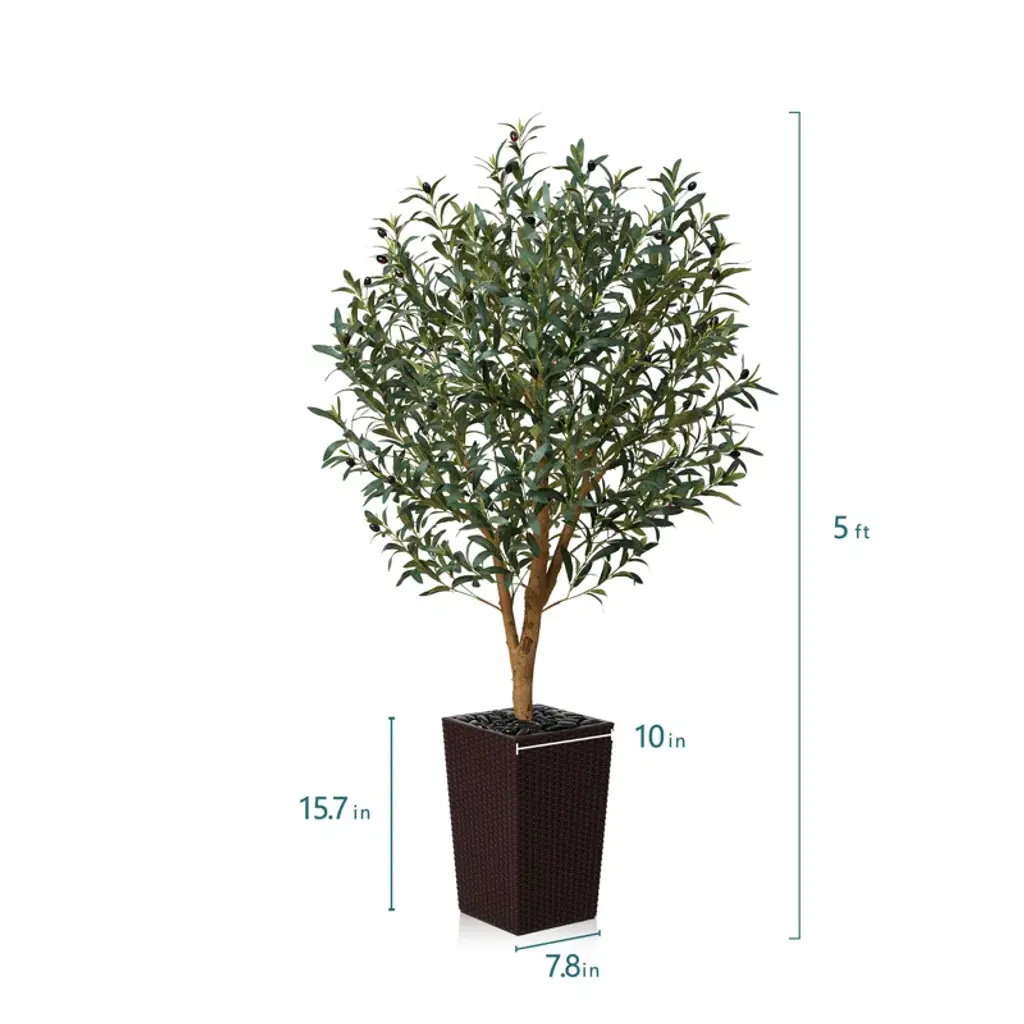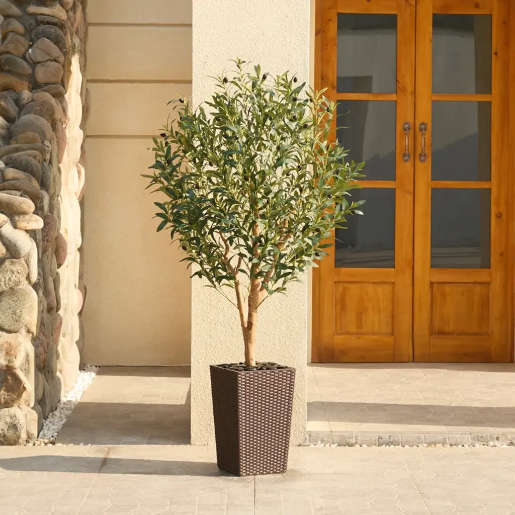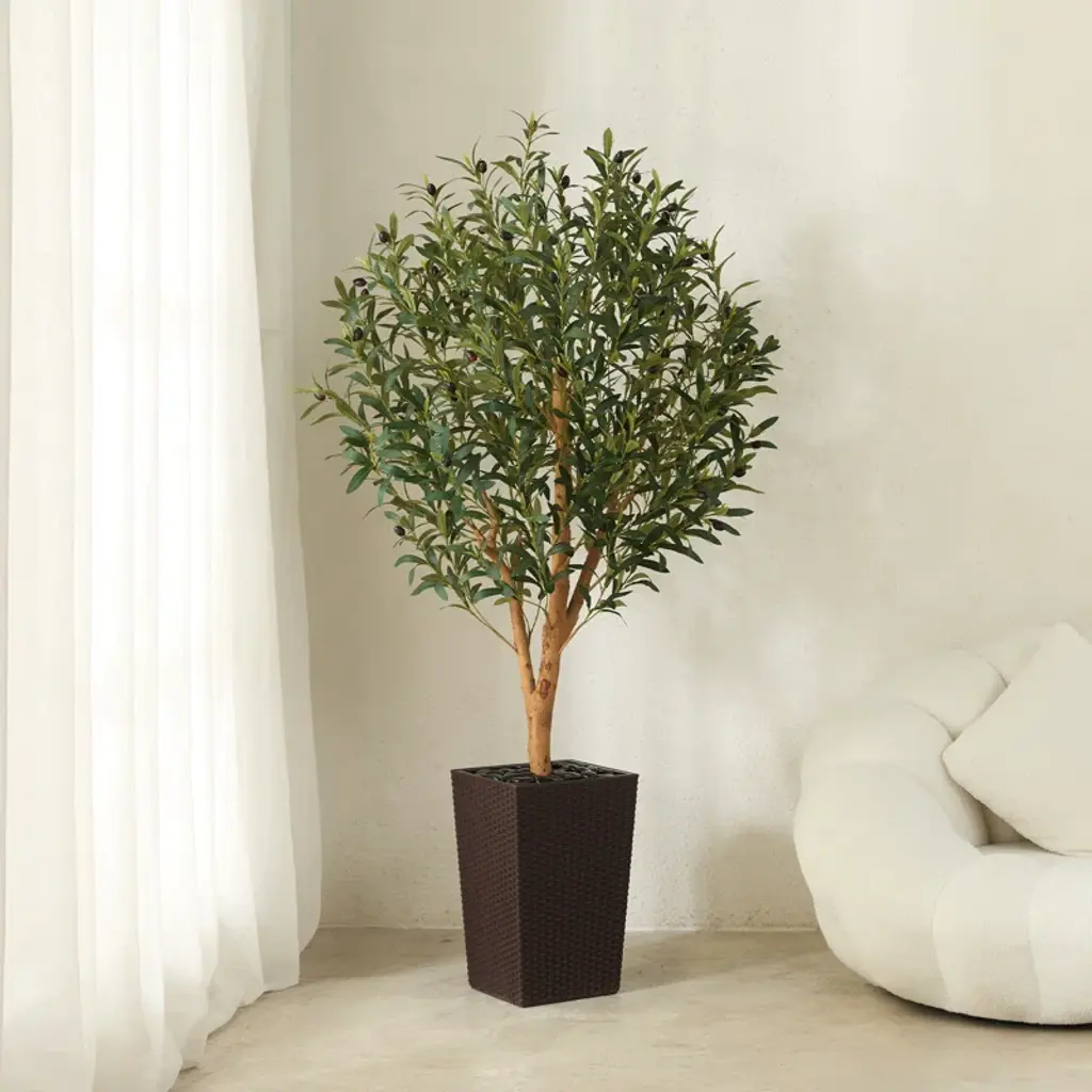 Transform any room or outdoor space with the timeless beauty of this faux olive tree. With a real natural trunk and lush green silk leaves, it’s like having nature’s elegance without the upkeep. Perfect for living room decor, bedroom decor, or even your patio decor, its UV protection ensures it thrives in the sun, season after season. The sturdy, large base eliminates the need for an extra pot, while the included decorative pebbles add a finishing touch, making the tree feel even more authentic. Whether inside or out, this artificial olive tree brings a piece of nature to your home, effortlessly blending with any home décor aesthetic.
