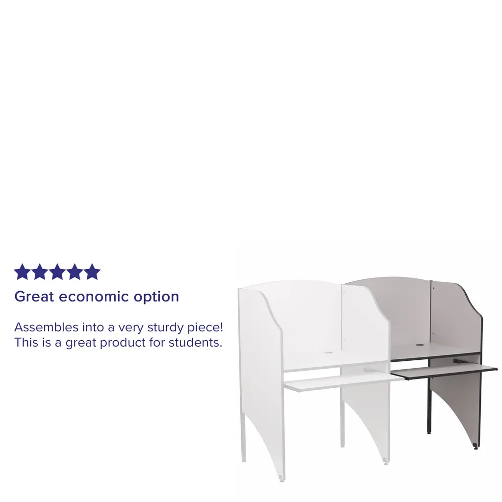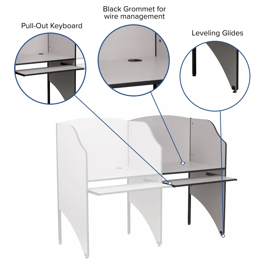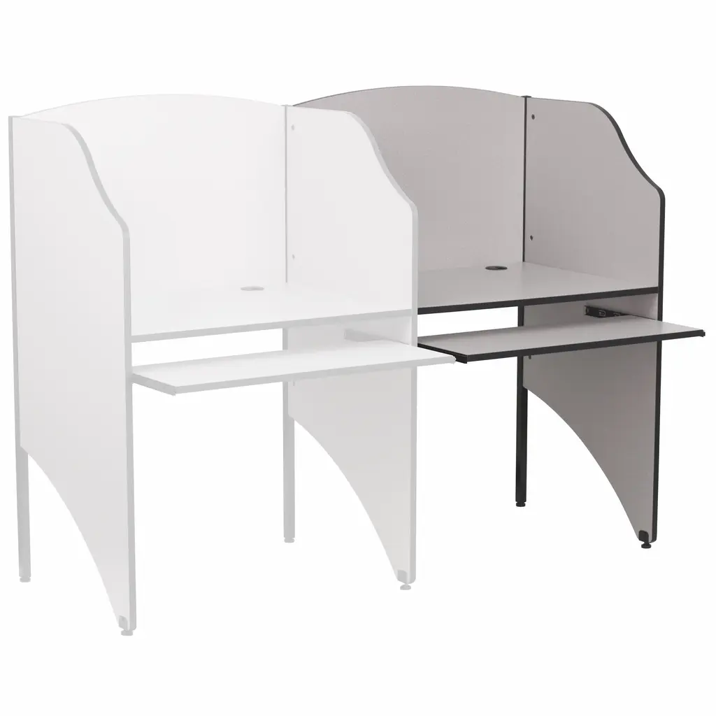 Whether you're homeschooling, studying for an upcoming exam or just need a quiet space to read, this add-on study carrel can be used in a variety of environments for both students and adults. The solitude of a study carrel makes this the perfect option for libraries, computer labs, training centers or any other environment where individual concentration is required. This floor carrel features a large work surface to accommodate a computer monitor or laptop with room for books and paperwork and a pull out keyboard tray. Leveling glides ensure you have a stable work surface. Create a row of study carrels by purchasing the starter unit and then adding multiple add-ons to construct an area for users to have their own personal space for privacy. The possibilities for creating your custom space are endless.