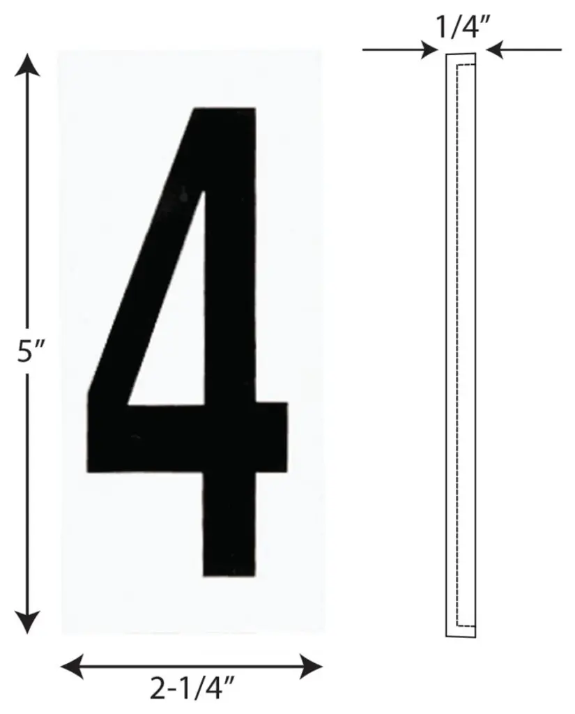 Address numbers for P5968 address lights. Ten "4" in package.Finish: WhiteMount Type: Address LightStyle: Utilitarian/CommodityFeatures: Number tile to be used with address lightContains 10 per packRoom Type: Outdoor Lighting and/orDimensions: Width/Diameter:2-1/4"Height:5"Specifications:General:Pre packaged in 10 pieces per item numberBlack numbers or letters are pre-applied to a white backgroundPolycarbonate materialEach number or letter is inserted into top and bottom slots in the P5968 housing with a lift and drop motion, once the cover is removed from the housing