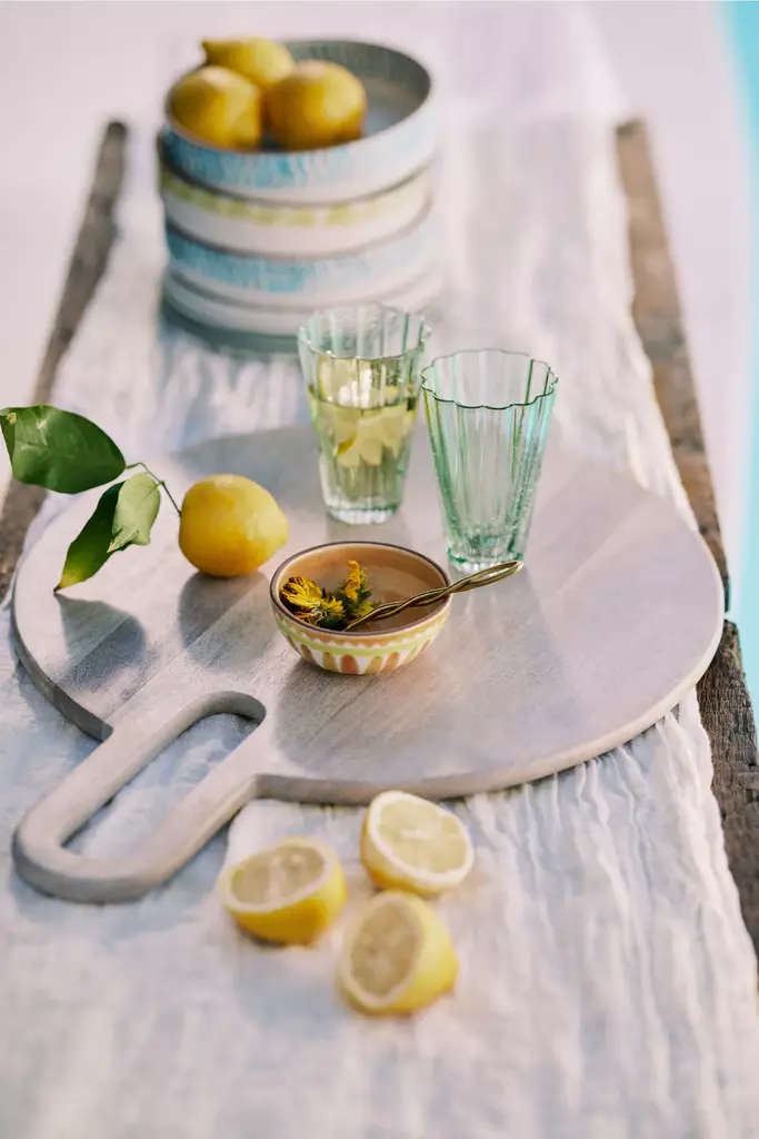 A beaded edge is an elegant detail on a simple set of servers for everyday dining or weekend entertaining.