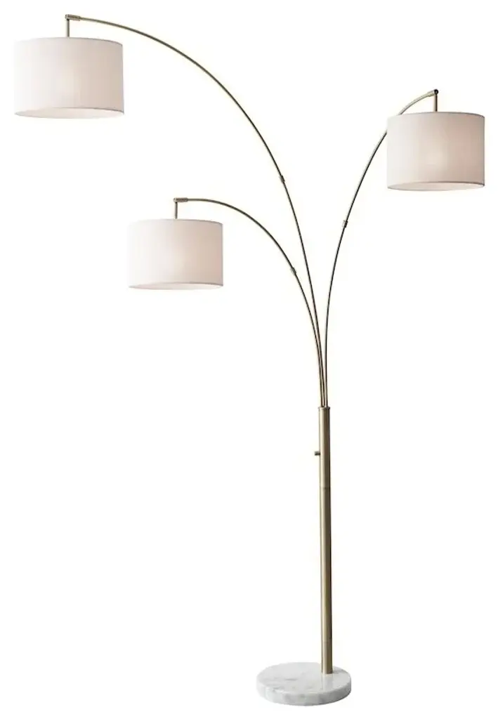 Adesso Bowery 3-Arm Arc Lamp, Antique Brass