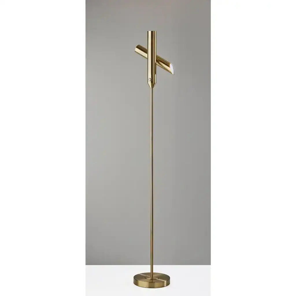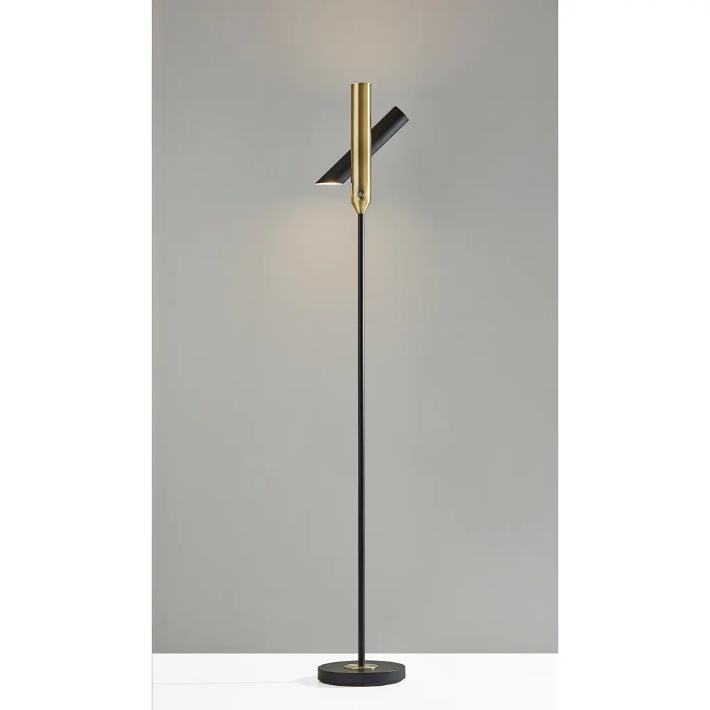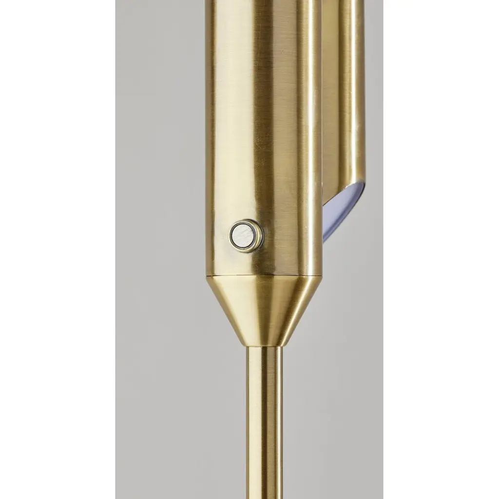 Add some mid-century modern flare to your space with the Vega LED Torchiere. Black and antique brass metals are mixed to create a sleek, unique silhouette. A convenient 4-way touch switch adjusts the light to 4 different settings: All on; Upplight on only; Downlight on only; All off. The downlight is adjustable and can serve as a task light if needed. The LED's are integrated into the lamp and are not replaceable, but last 50,000 hours. Used 12 hours a day, this will last more than 11 years! Features: Black & Antique Brass finish Ambient Upplight & Adjustable Downlight 4-Way Touch Switch located under Shade Round black metal Black 63-inch Cord ETL Listed Title 20 Compliant: Yes Some Assembly Required 1-Year Limited Manufacturer Warranty LED Information: 1800 Lumens; CRI: 80; 3,000K Integrated 24-watt LED Bulbs last up to 50,000 hours Measurements: Width: 13.5-inch Height: 68-inch Extension/Depth: 13.5-inch Weight: 10.57 lb. Upplight: 2.25-inch Dia. X 13.5-inch H Adjustable downlight: 2.25-inch Dia.x 10.75-inch-13"H Base Dimensions: 10-inch