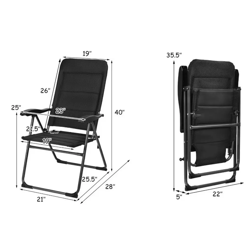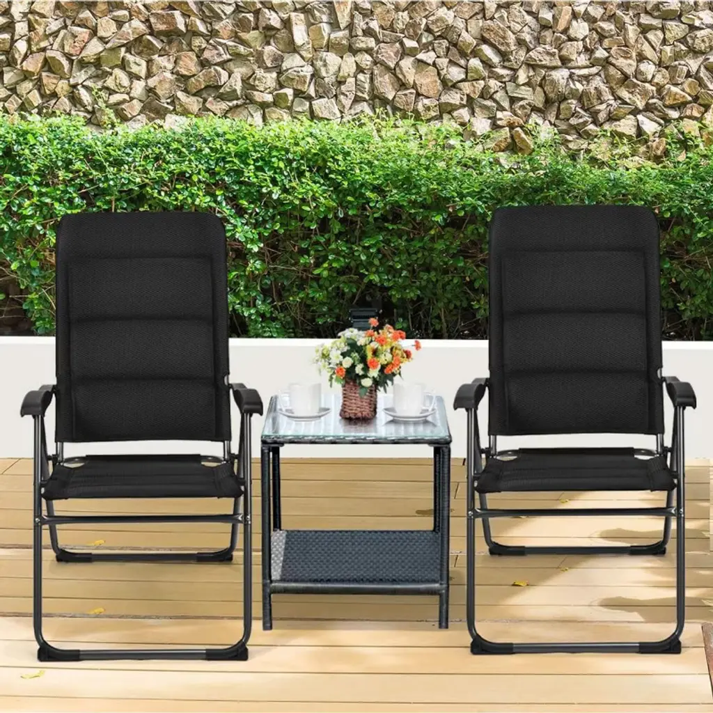 Adile Set Of 2 Patio Chairs, Folding Chairs With Adjustable Backrest, Black