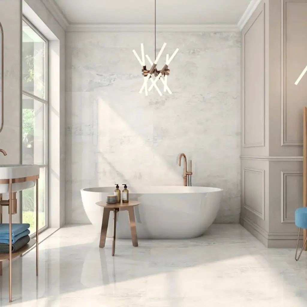 Made from the highest quality porcelain, our Adin collection stands out due to its durability, unique veined appearance, and beautiful coloring. Sized as a 24-inch x 48-inch large format tile, Adin is available in two colors with a polished finish, seamlessly blending into any room. This collection is ideal for designers hoping to replicate the look and feel of naturally veined marble. FEATURES: Vibrant colors 20 Different faces Impervious and waterproof PEI 4 Polished porcelain tile Easy to install 24" x 48" large format porcelain tiles Ideal for bathroom, shower, kitchen floors and walls DIMENSIONS: Individual tile: 24-inch x 48-inch Overall product weight: 78 lbs. Surface area per carton: 15.49 square feet