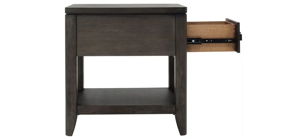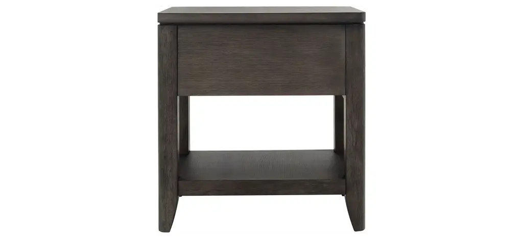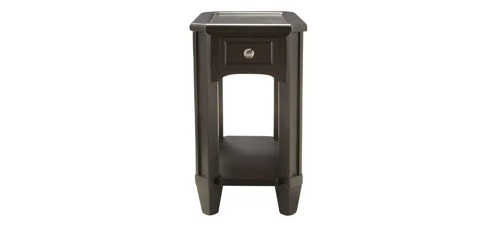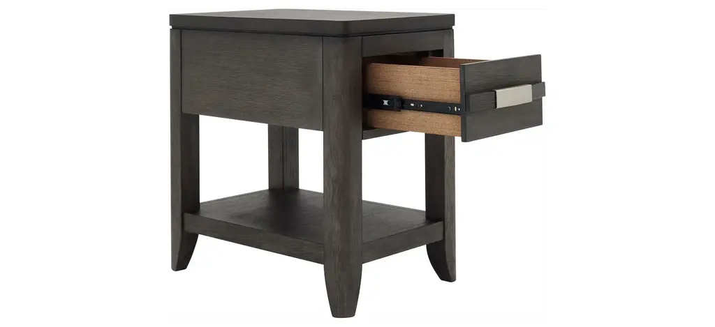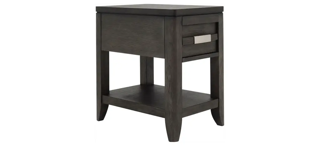 With its bold, clean lines and dark gray finish, the Adir chairside table adds modern beauty to your home. Its urban, minimalist appeal makes a statement in any space.