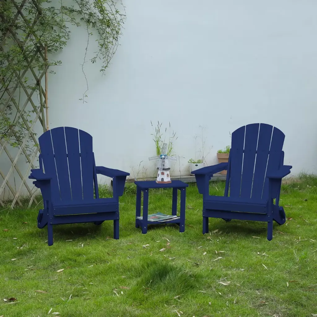 Adirondack Chair Set,2 Folding Adirondack Chair With 1 Side Table,3-piece Navy Blue Adirondack Chair Set With Wood Texture For Patio,garden-cuddlewood