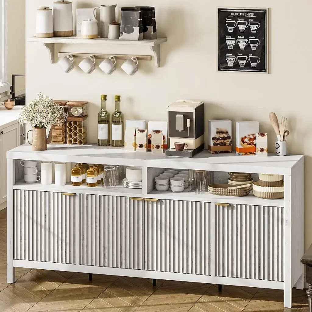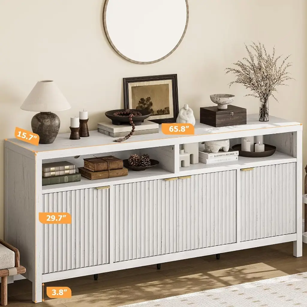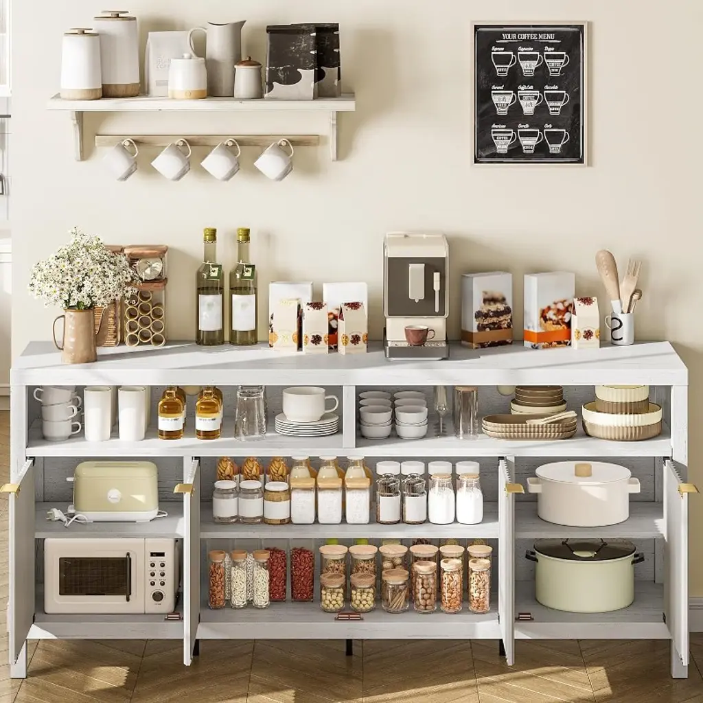Spacious and Adjustable Storage Space: This 65.10-inch high cabinet provides ample storage space for kitchens, dining rooms, entrances, or home offices. There are three adjustable shelves behind the slotted door, which are perfect for placing cooking utensils, pantry supplies, or home decor essentials