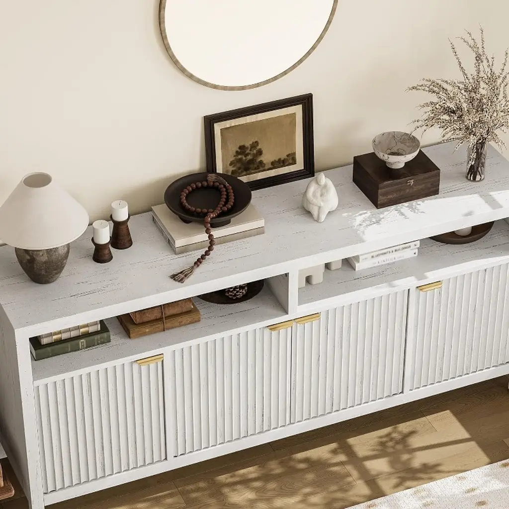 Adjustable 3-layer Slotted Storage Cabinet With Doors And Handles, Designed For Kitchens, Entrances And Dining Rooms,antique White