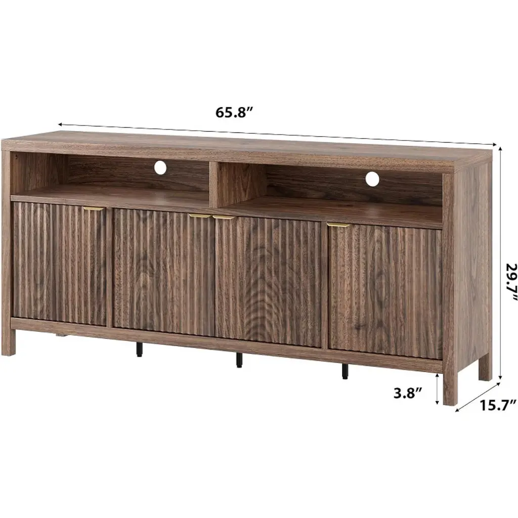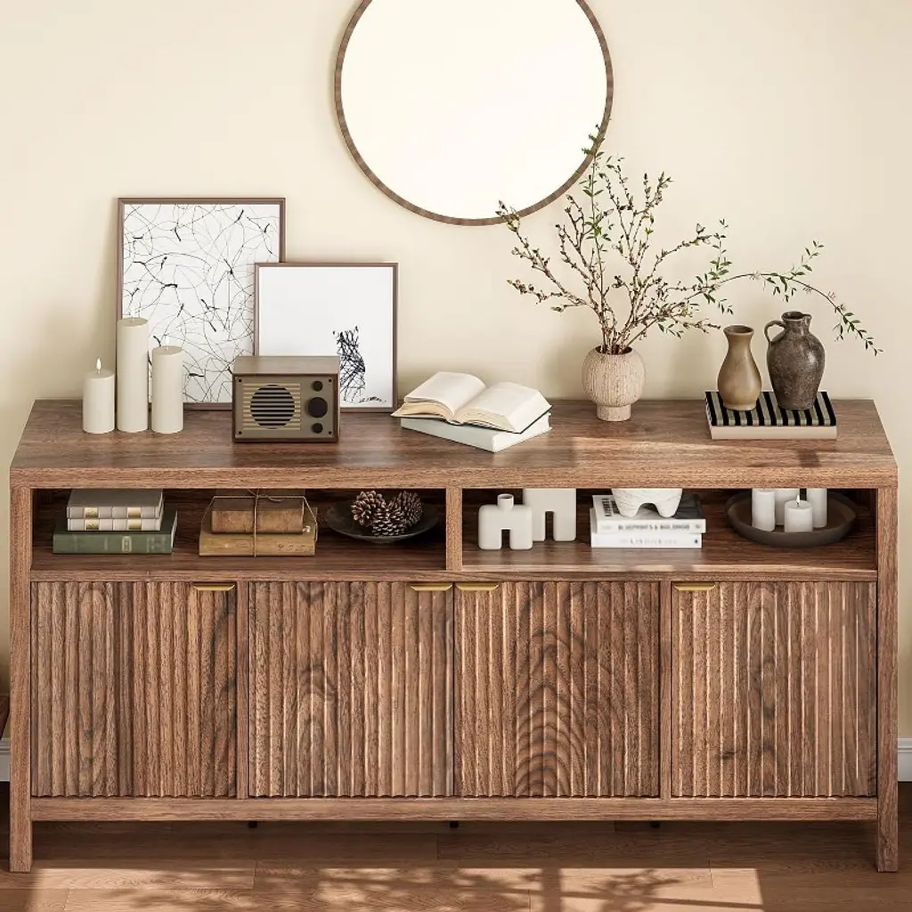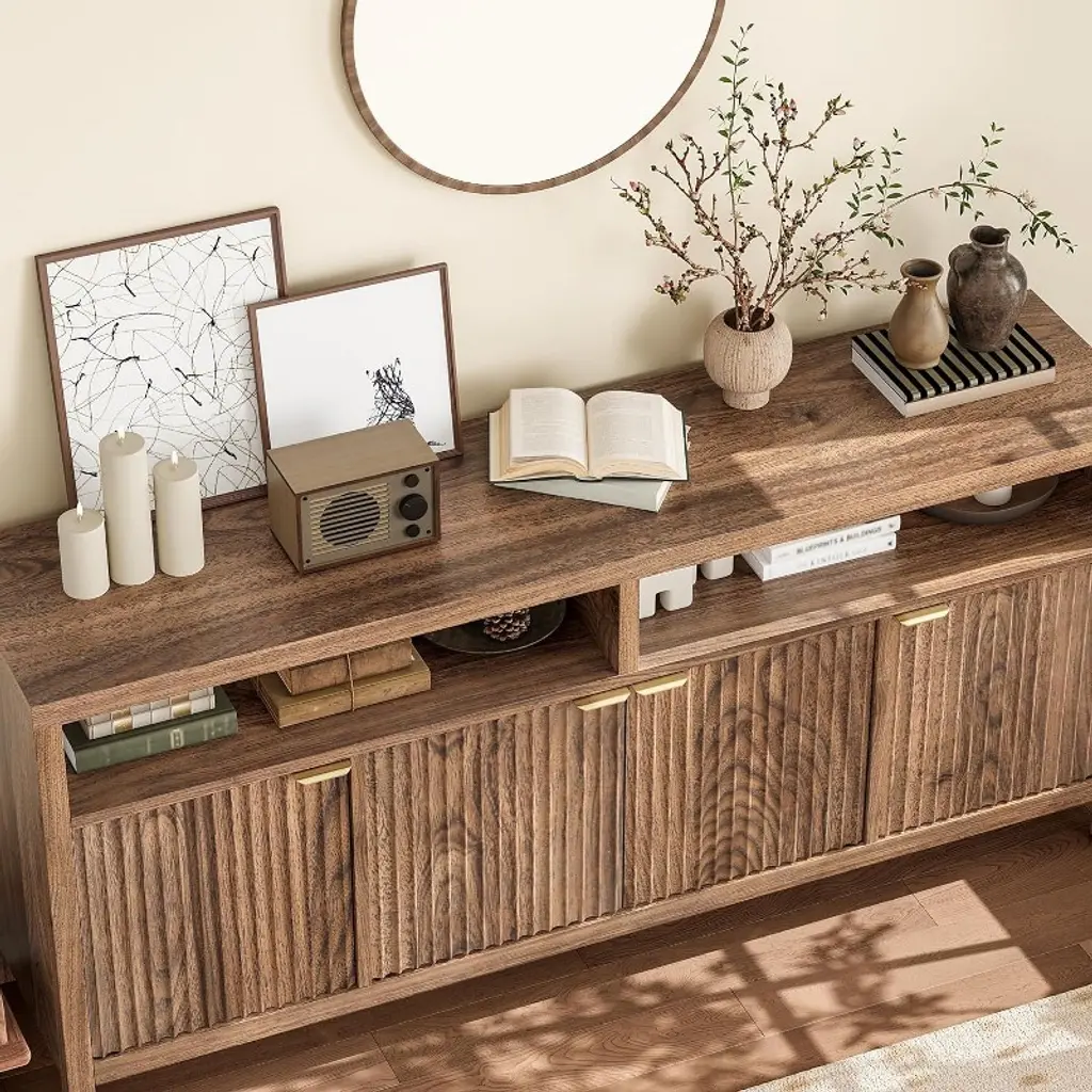 Adjustable 3-layer Slotted Storage Cabinet With Doors And Handles, Designed For Kitchens, Entrances And Dining Rooms,walnut