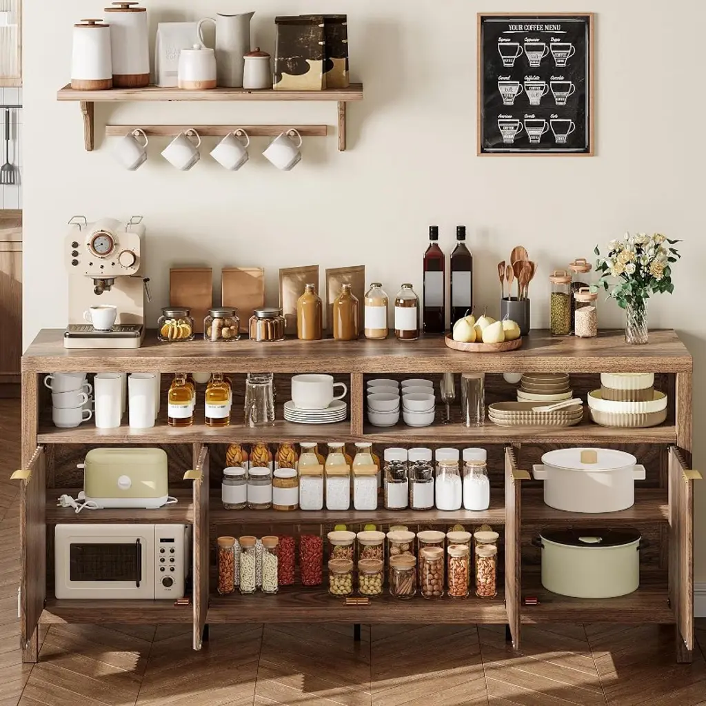 Spacious and Adjustable Storage Space: This 65.11-inch high cabinet provides ample storage space for kitchens, dining rooms, entrances, or home offices. There are three adjustable shelves behind the slotted door, which are perfect for placing cooking utensils, pantry supplies, or home decor essentials