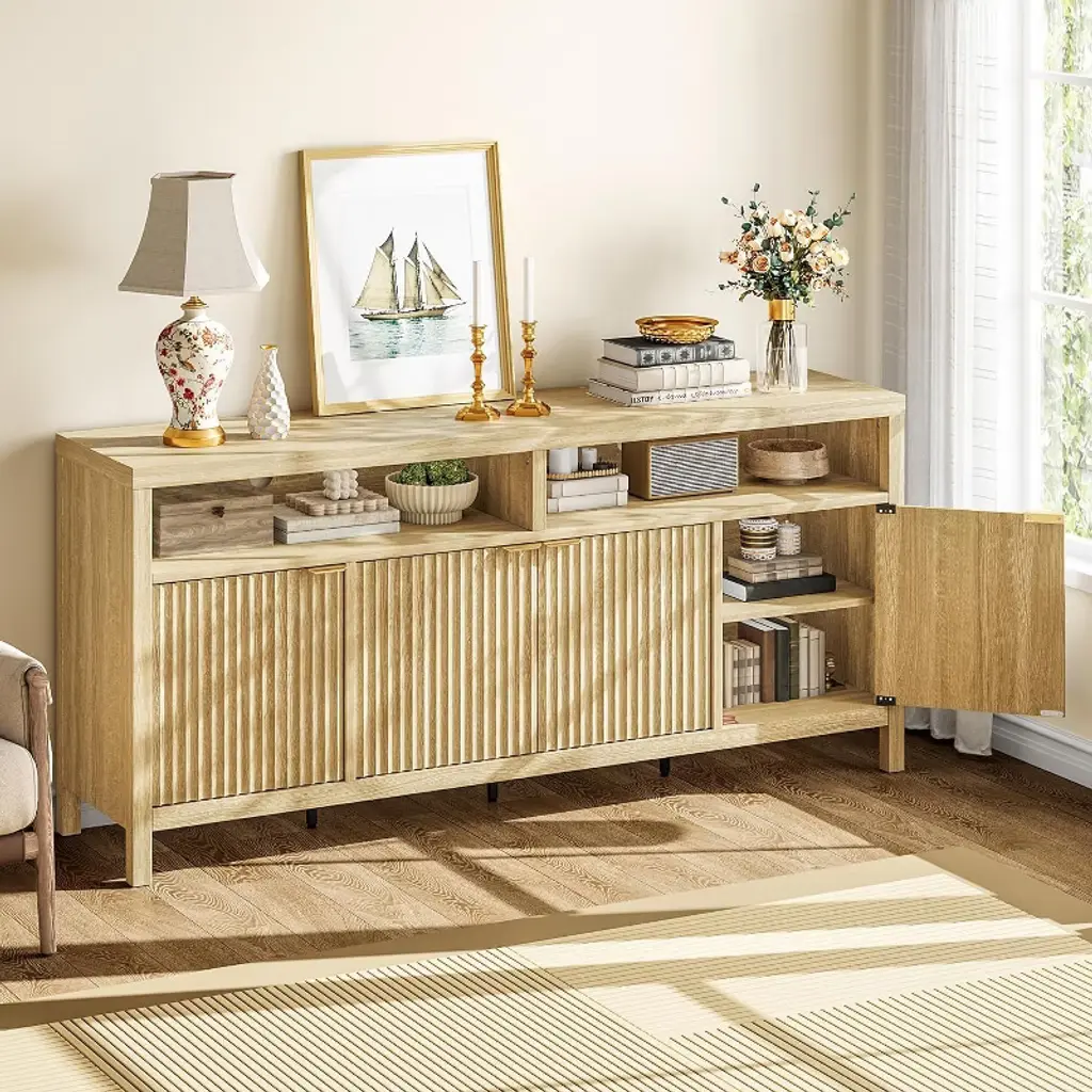 Spacious and Adjustable Storage Space: This 65.9-inch high cabinet provides ample storage space for kitchens, dining rooms, entrances, or home offices. There are three adjustable shelves behind the slotted door, which are perfect for placing cooking utensils, pantry supplies, or home decor essentials