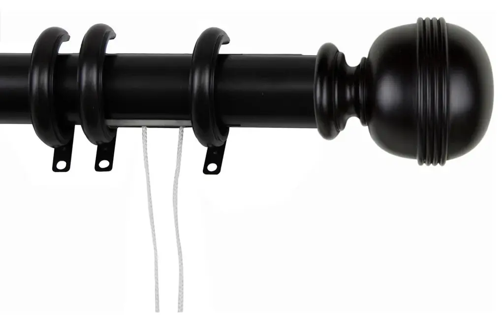 Adjustable Acorn Drapery 5/8" Rod, 84"-120", Black