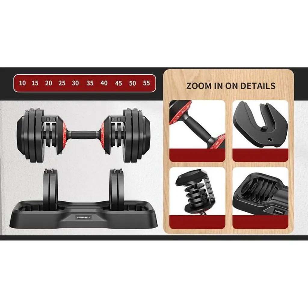 Adjustable Dumbbell , 10 In 1 Free Dumbbell For Men And Women, Black Dumbbell For Home Gym, Fast Adjust(10 Gears/55 Lb) - Black