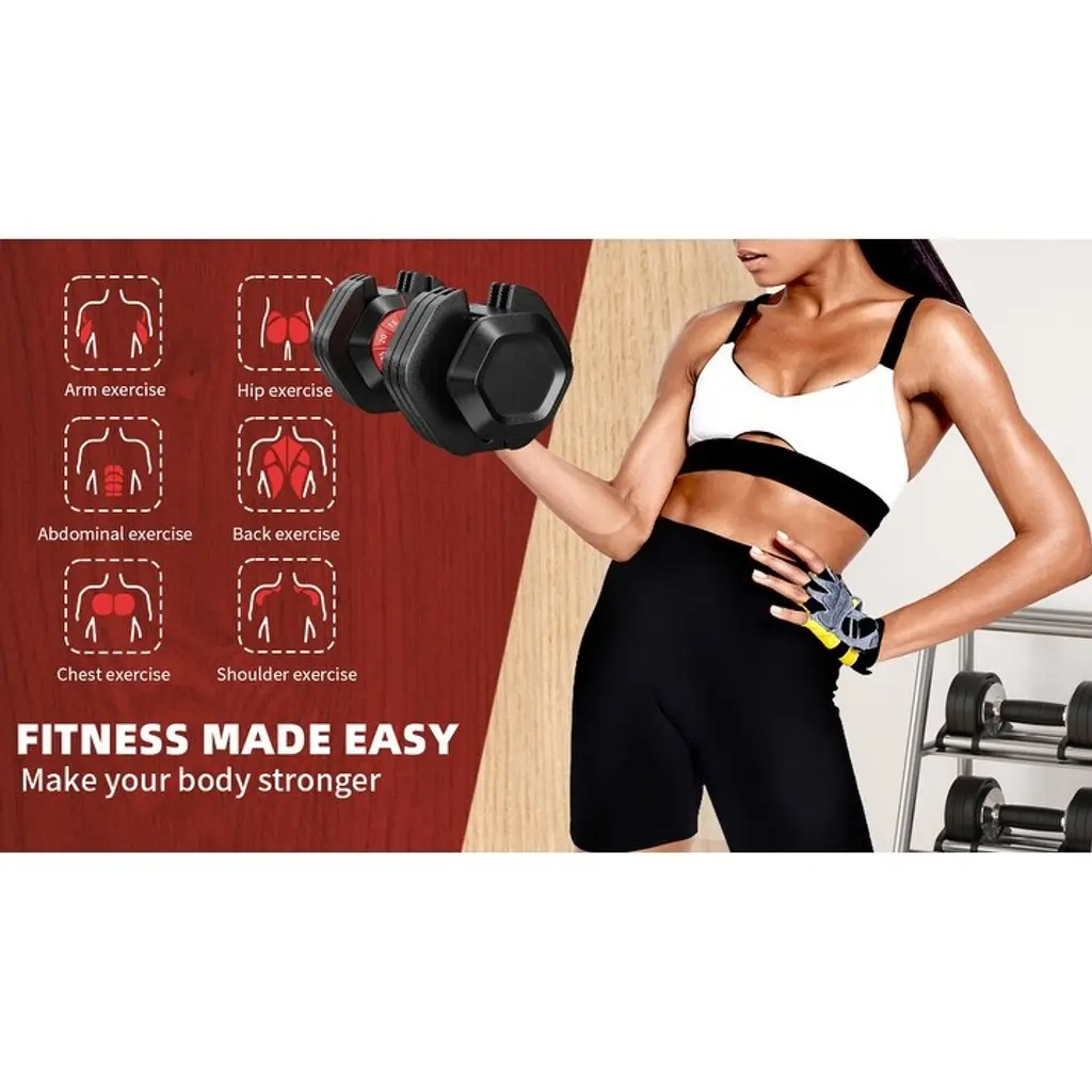 【Ten In One Weights Training】: You only need single dumbbells, you can have 10 sets of dumbbell training experience, the weight can be adjusted according to your own level, this cleverly designed adjustable dumbbell meets fitness hobbies the needs of practitioners and professional weight trainers.【1-Second Weights Change】: Turn the handle with one hand to quickly adjust to the required weight. There will be a corresponding pointer and a click sound to let you know that the adjustment is completed. This adjustable dumbbell allows you to enjoy a simpler and smoother workout.【Better Than Ten】Only need 1-set of dumbbell space, you can have 10-sets of dumbbell training experience with 80% space saving.strength equipment are designed with advice of professional coach, committed to meet your needs for diversified weight training.【New Safety Structure Design】: Double safety buckles on the tray and handle bar, so that the adjustable dumbbells can only be adjusted on the tray, ensuring the safety and stability of the dumbbell pieces during exercise after leaving the tray.【The Benefits of Dumbbell Exercise】: The multi-weight one-piece design of dumbbells is very suitable for specific part and whole body exercises, bringing benefits such as building muscles, burning calories, improving cardiovascular and eliminating strength imbalances for your body and mind.