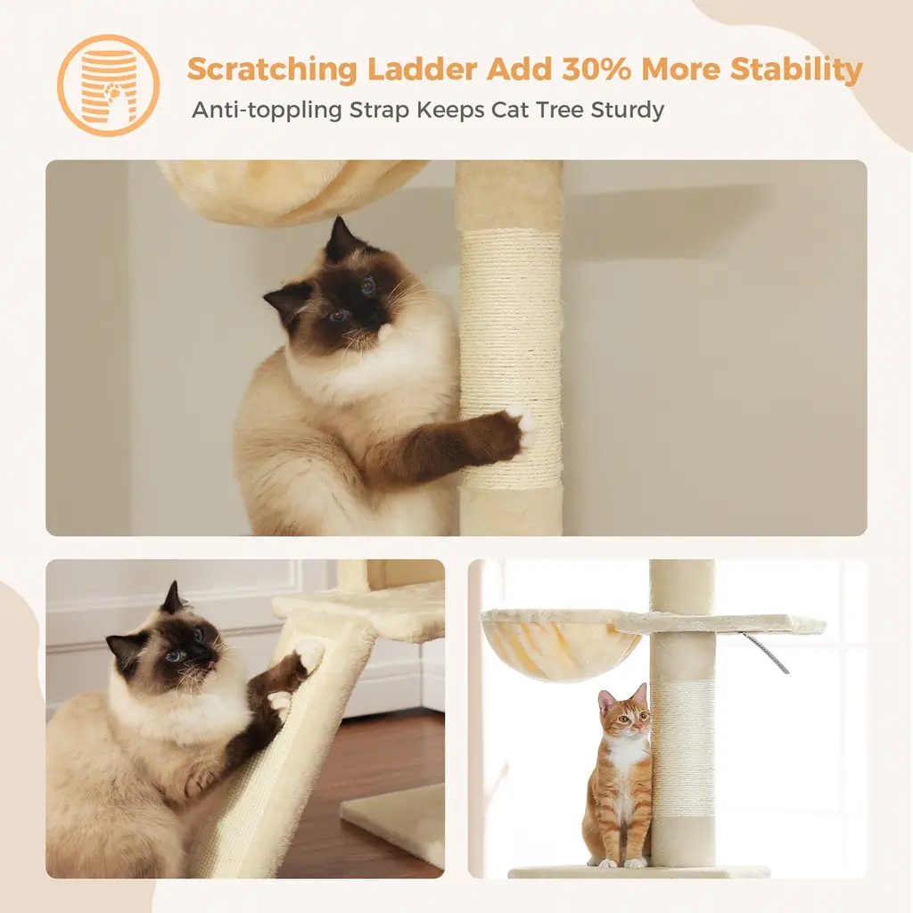 Adjustable Height Floor To Ceiling 5-Tier Tall Cat Tree Tower For Indoor Cats With Cat Condo, Cat Scratching Post And Cat Ladder - Beige