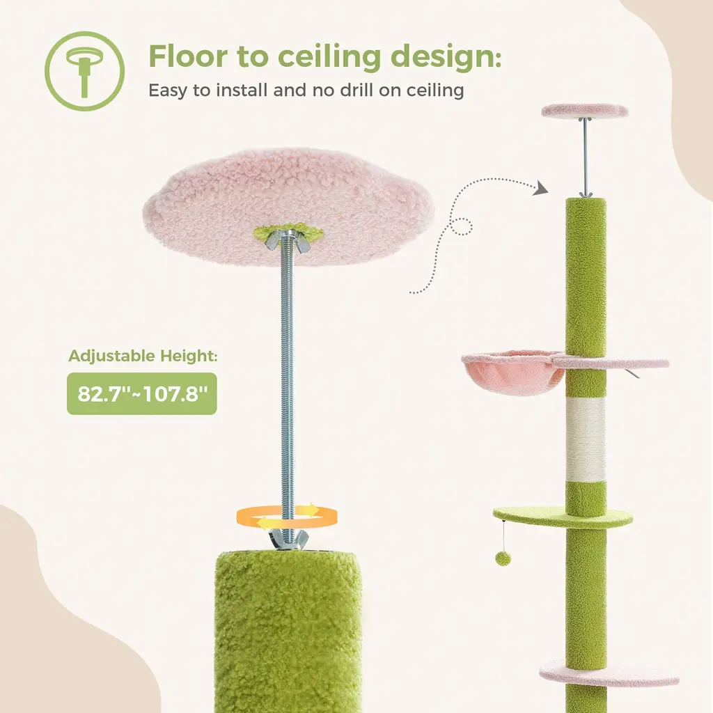Adjustable Height Floor To Ceiling 5-Tier Tall Cat Tree Tower For Indoor Cats With Cat Condo, Cat Scratching Post And Cat Ladder - Pink