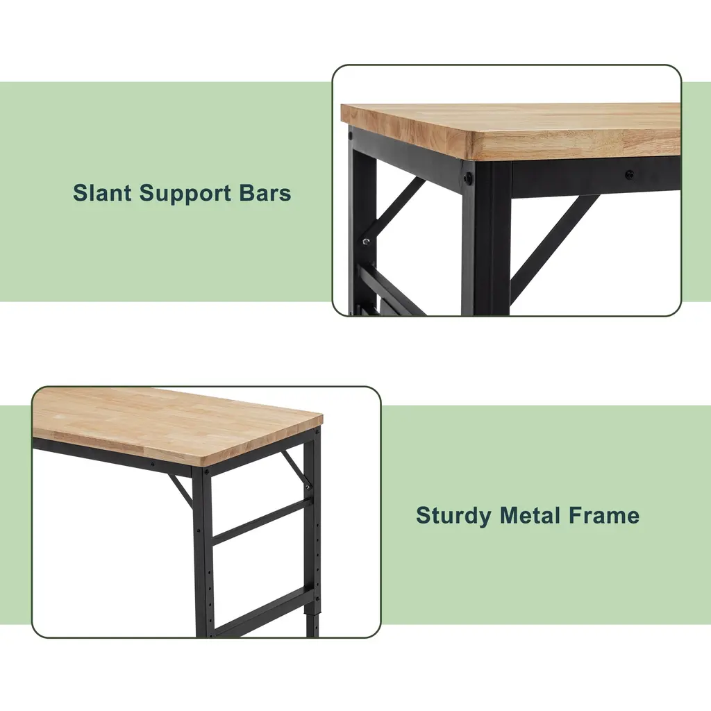 Adjustable Height Workbench, 60" Heavy Duty Workstation With Power Outlets, 2000 Lbs Load Capacity Hardwood Worktable - Black+wood