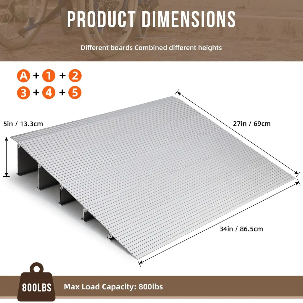 Adjustable Rise Door Threshold Ramp, 800lbs Load Capacity - 5"