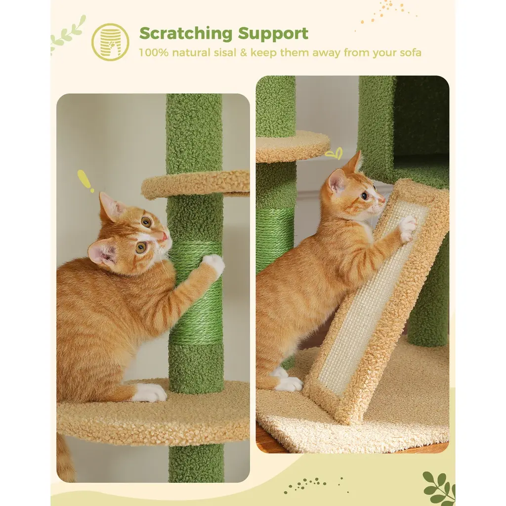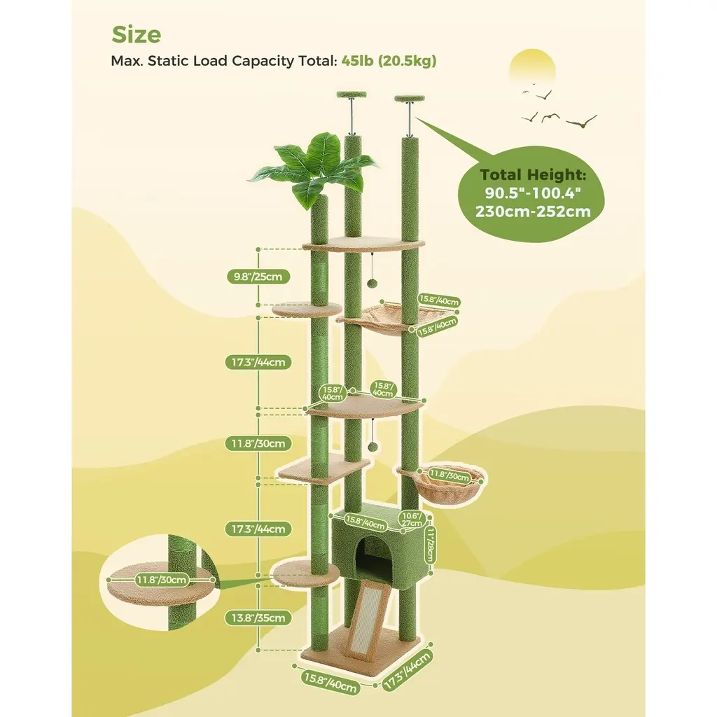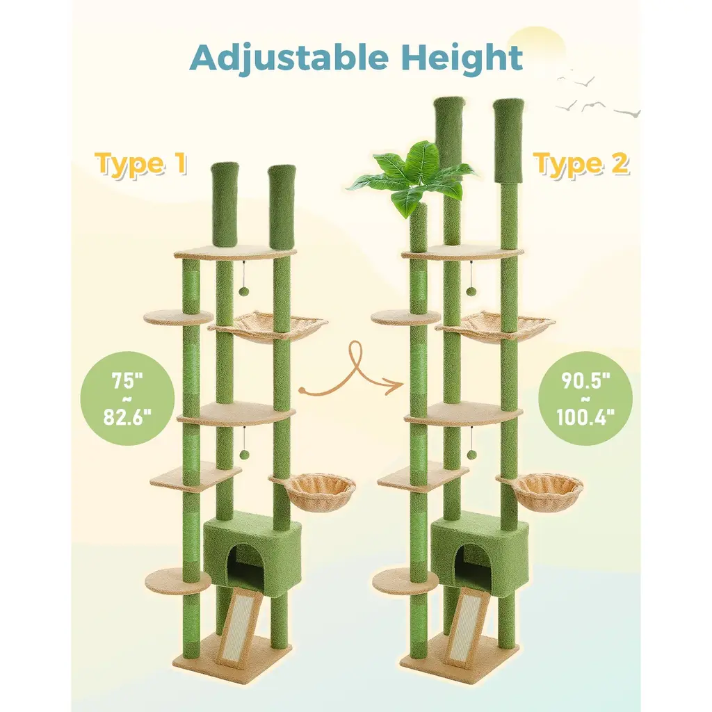 Adjustable Tall Cat Tree Cat Tower With Condo, Hammock And Scratching Post - Green