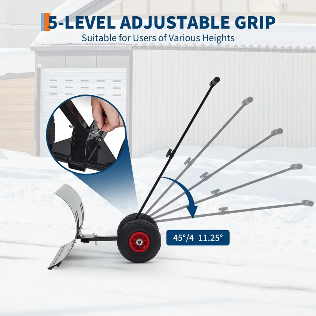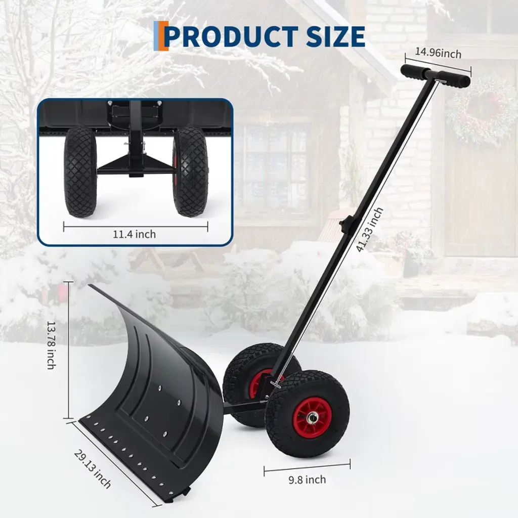 Adjustable Wheeled Snow Shovel For Driveway, 29-inch Wide Push Plow With Angled Blade For Efficient Snow Removal On Pavement & Walkways