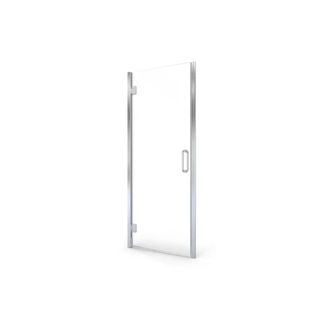 Alu wall channel with quality #304 stainless steel handle, with 36000 times open and close test. SGCC 1/4" tempered clear glass Smooth and comfortable pivot system Good anti-leakage function. Big adjustement, cover 24-25 3/8"