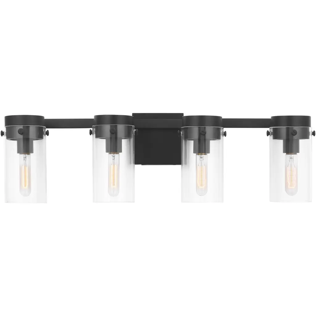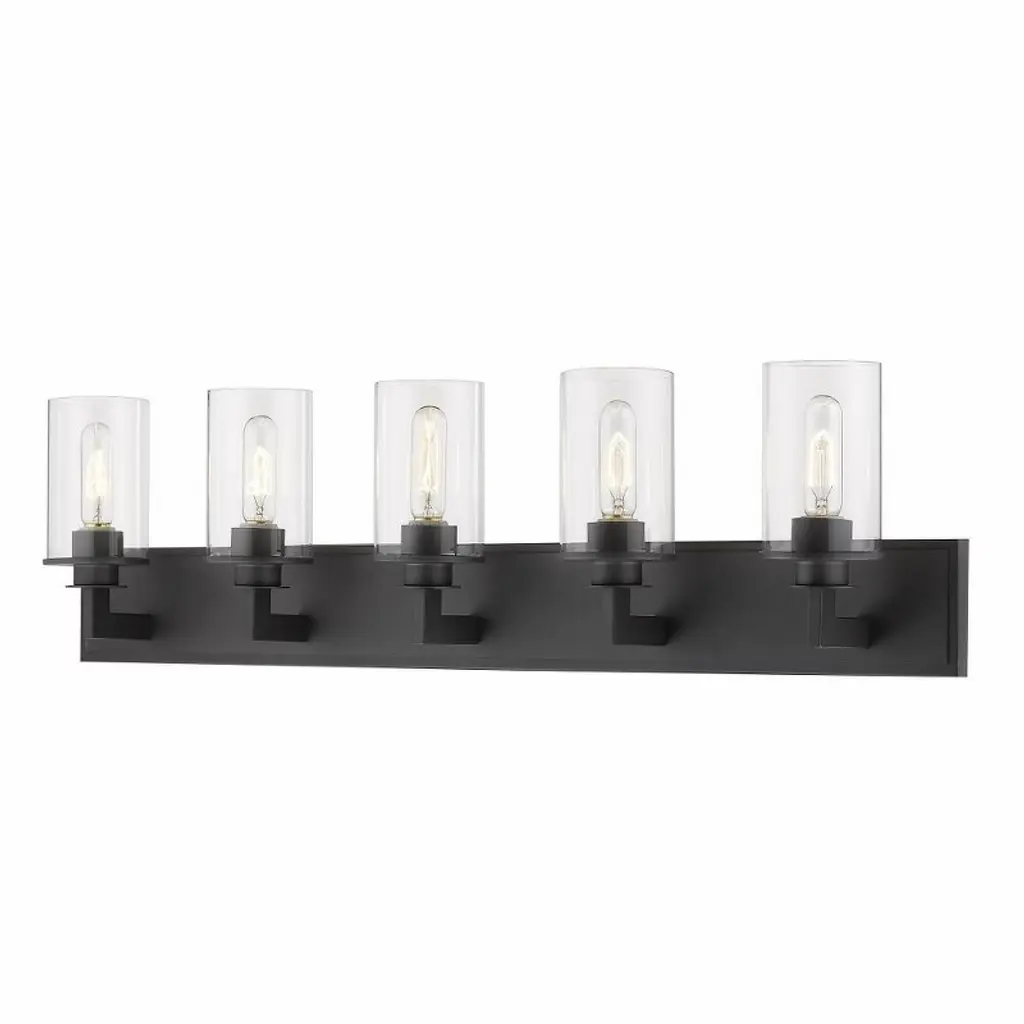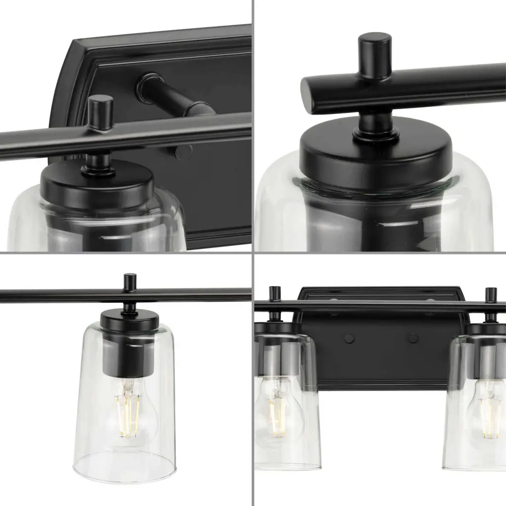 Fundamentally modern but with a traditional twist, the Adley six-light combines simple, clear glass shades with a curved edge backplate. A matte black, curved backplate and simple, straight bar hold classic, clear glass shades, making it an excellent choice for new traditional and transitional settings.