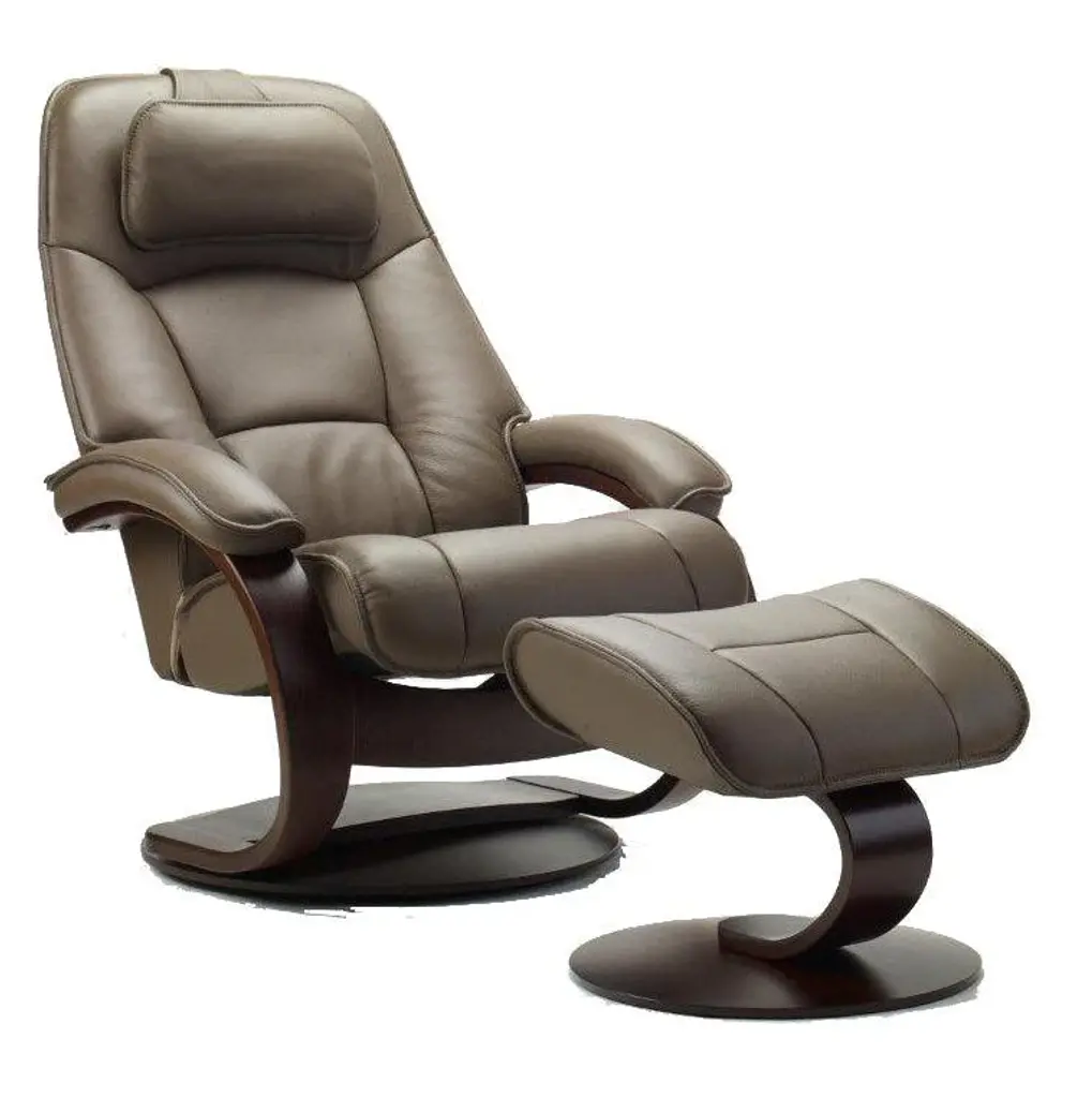 The Fjords Admiral chair with variable adjustment provides continuous support for your legs and back, with bases which have a 360° swivel. The Fjords Admiral Recliner and Ottoman with variable adjustment provides continuous support for your legs and back, with bases which have a 360° swivel. The base is produced in laminated, stained beechwood which gives it an elegant character. Available in all our leathers and select fabrics, the Admiral features an adjustable head pillow for maximum comfort and a manual release adjustable headrest angle. The chair is available in two sizes, small and large. Fjords has a massive collection of recliners with matching ottomans. Inspired by norwegian nature since 1941 Fjords has designed and manufactured furniture for 70 years. The two brothers Otto and at Mindor Hjellegjerde started it all in the fjord village Sykkylven in Norway In 1946, the third brother, Ingvar, joined the business. With a fierce dedication and great skill, the brothers managed to build a business that has become one of the largest furniture companies in Norway. They have grown from a small family business in a basement to what they are today, a company spread over four continents. Quality and craftsmanship Through all these years, they have produced comfortable quality furniture based on good craftsmanship and Norwegian design. We are proud that the furniture from Fjords are produced with the same dedication and skill as in 1941. Inspiration What is it that makes Fjords different from other furniture manufacturers elsewhere in the world? Is it the contrasts landscape that surrounds them, where the endless motion of the ocean meets the strength of the mountains? Or is it the light in Norway – constantly changing – sometimes light, sometimes dark, unable to exist without the other? Both yes and no. The nature around them is robust and what they make is solid. The nature around them is generous – their furniture is made for generous comfort. Colors & materials Choosing the right fabric or leather on a piece of furniture should be logical and exciting. Therefore, Fjords has put together a large number of modern fabrics, leathers and materials within the corresponding colour nuances that will make it easier to be able to make your individual choices. All fabrics, leather and material samples are available to be seen in our showroom.