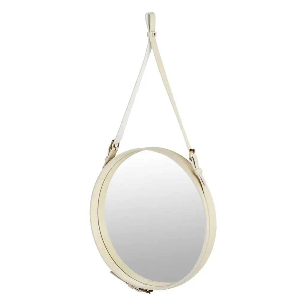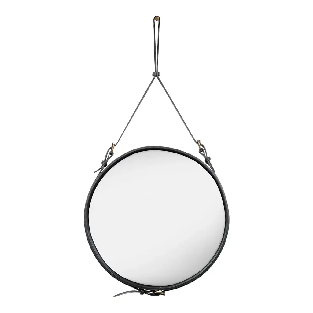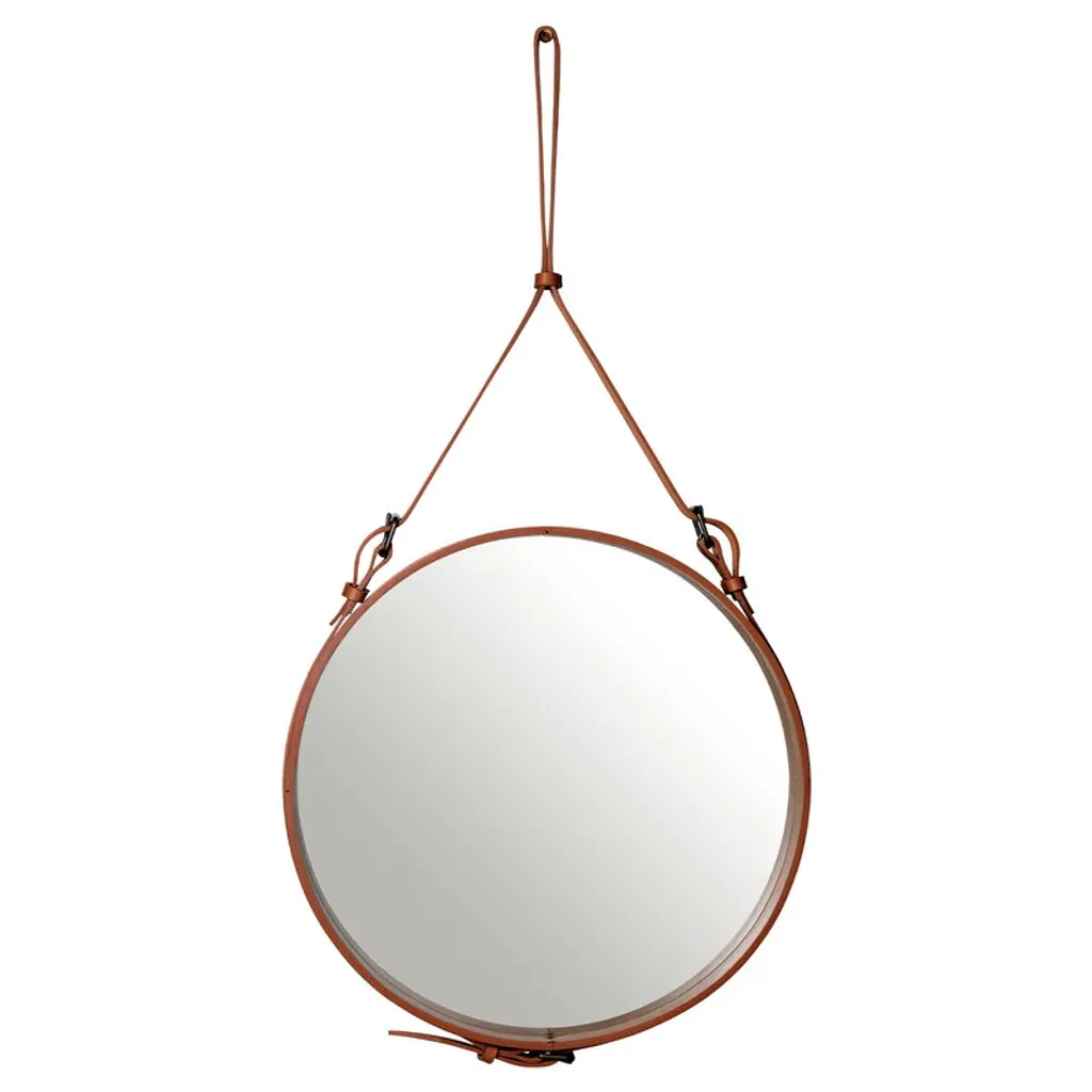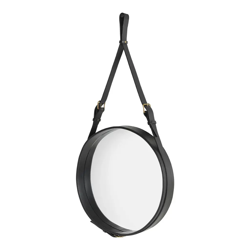 In 1950, Jacques Adnet formed a partnership with a famous French fashion house, where he developed a collection of discreet yet voluptuous leather-covered furniture and interior accessories. Known for being an innovative thinker, Adnet was one of the first designers to combine leather with glass. Accordingly, he designed the elegant, distinctive round leather mirror with equestrian inspired detailing - the Adnet Circulaire Mirror. Besides the remarkable leather and burnished brass details, the mirror in three sizes is also unique as the strap holding the mirror is in direct proportion to the dimension of it. The timeless Adnet Circulaire Mirror adds a sculptural value to any hallway, bathroom or living room and the three sizes can advantageously be combined to create an outstanding expression. Available in with buckles in burnished brass.